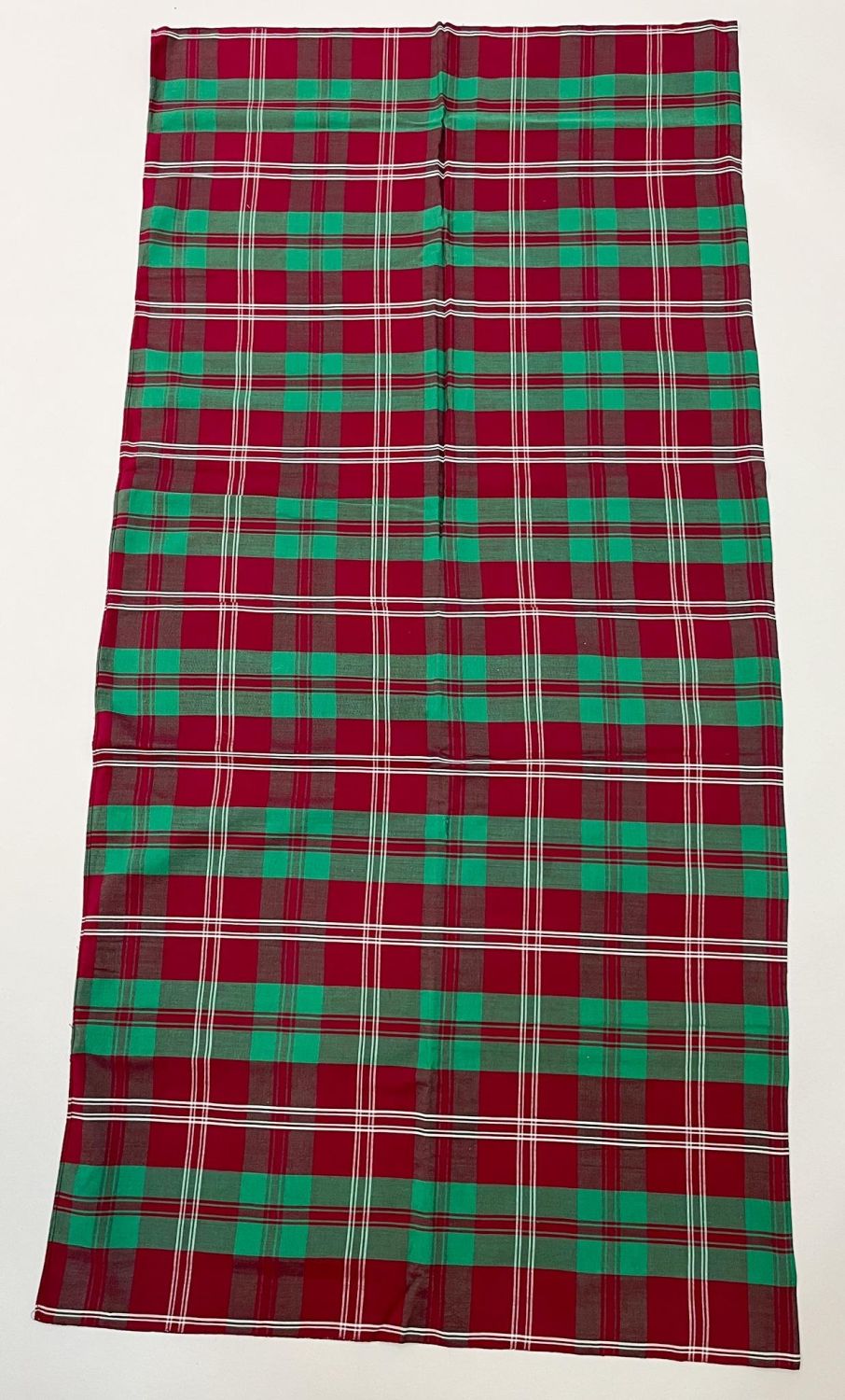 Mindanao, Philippines, vintage cotton "Malong" tubular sarong, burgundy, green and white check pattern, 62"l x 31"w