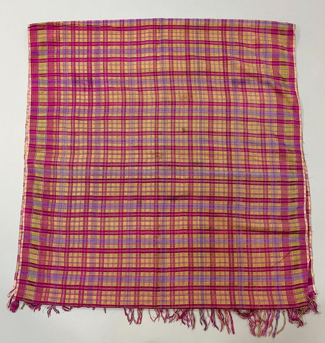 Lombok, Indonesia, vintage silk textile, magenta and chartreuse check pattern, 126"l x 29"w