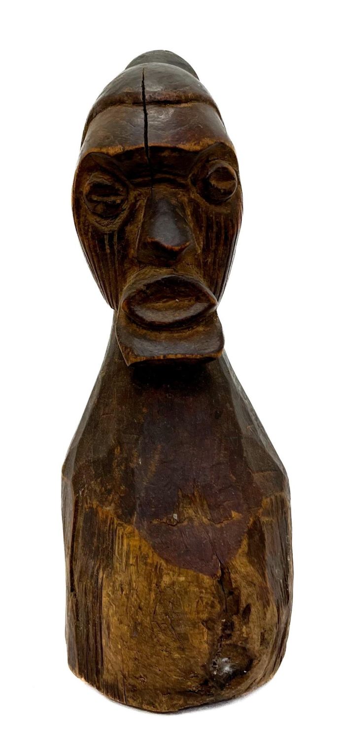 Teke People, Zaire (DR Congo), carved wood figure pounder, 9"h x 3"w