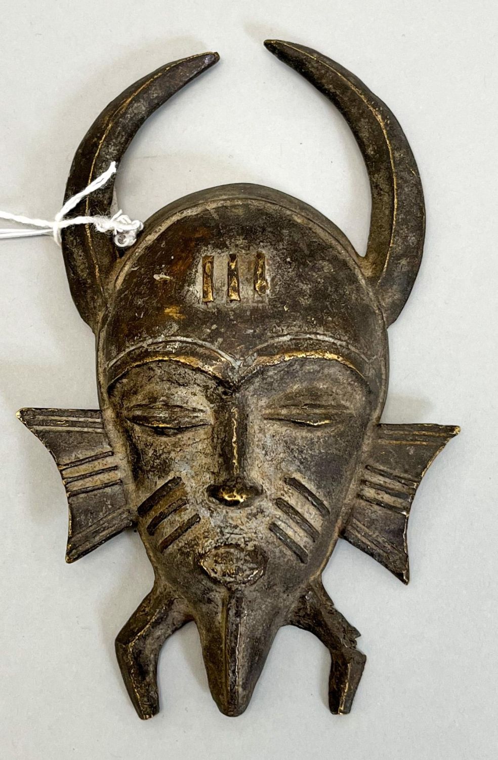 Senufo, Ivory Coast, brass mask figure, aged patina, 6"h x 3.25"w