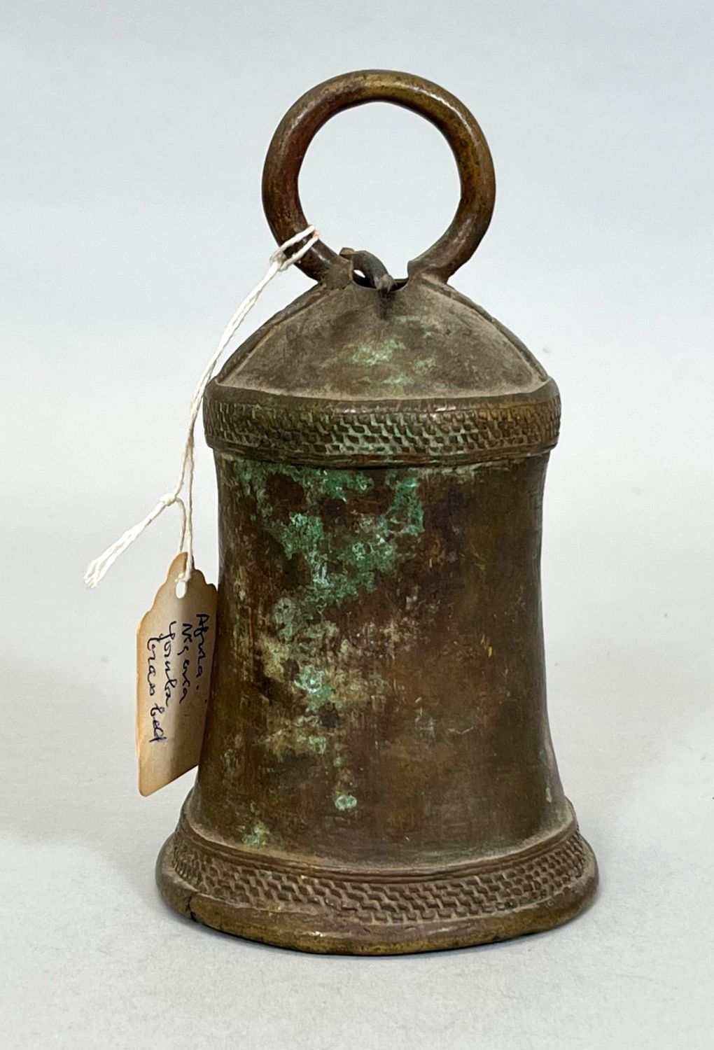 Yoruba, Nigeria, bronze bell, round shape, aged patina, 6"h x 3.25" diam