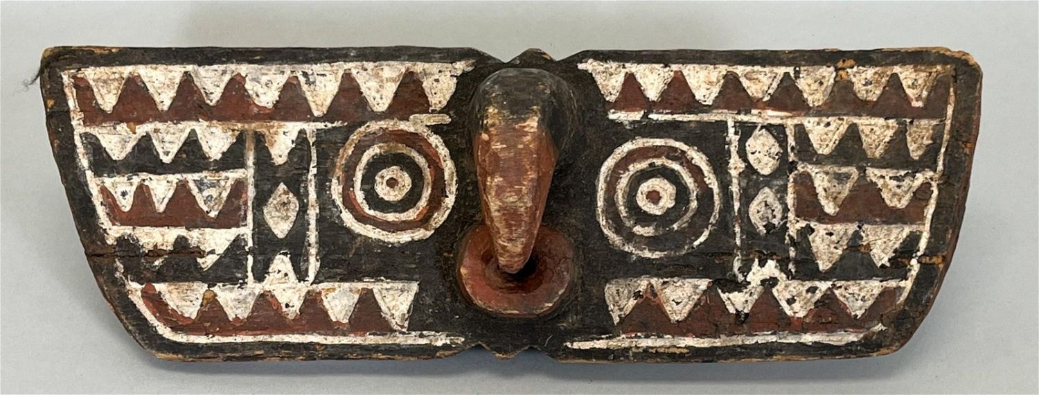 Mossi People, Burkini Faso, polychromed wood sculpture "butterfly", carved with geometric pattern, 5.5"h x 15" w x 5" d