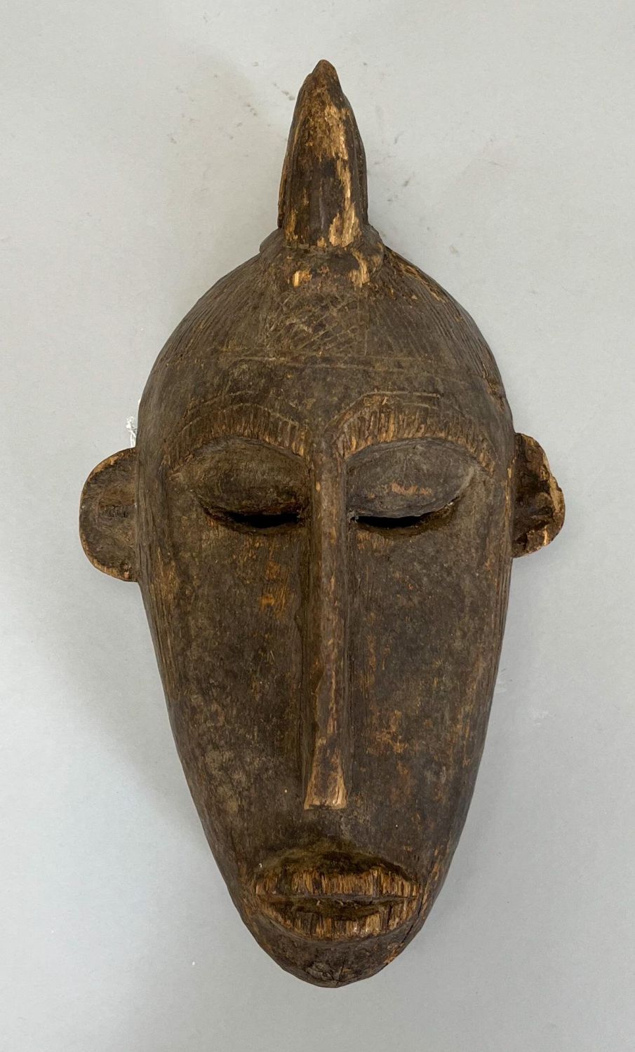 Bambara, Mali, carved wood dancing mask, darkened patina, 16"h x 9"w x 4"d