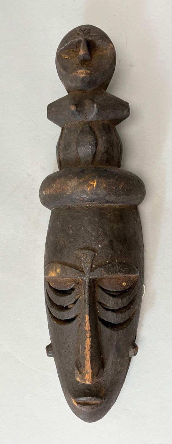 Eket or Ekid, Nigeria, carved wood mask with figure, darkened patina, 17"h x 4"w x 2"d
