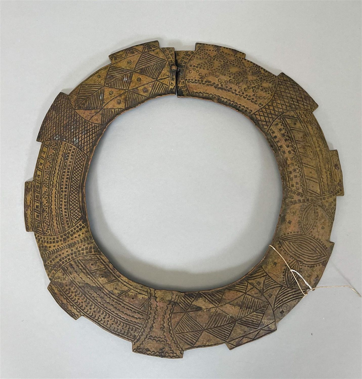 Ogoni, Nigeria, bronze neck piece with engraved symbols, 14.5" drop x 15.25" d