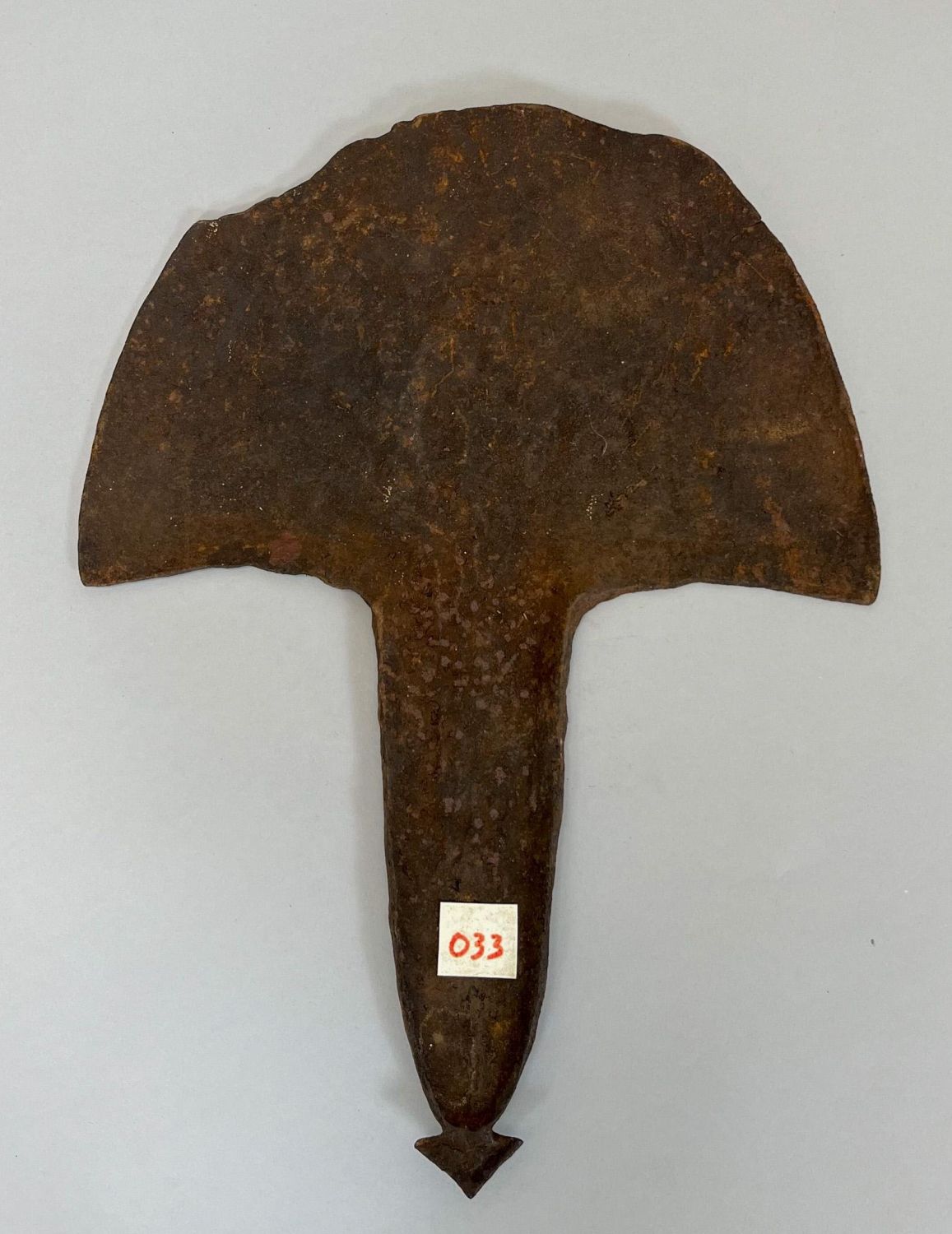 Mambila, Nigeria, heavy forged iron hoe tool currency, 16"h x 12"w