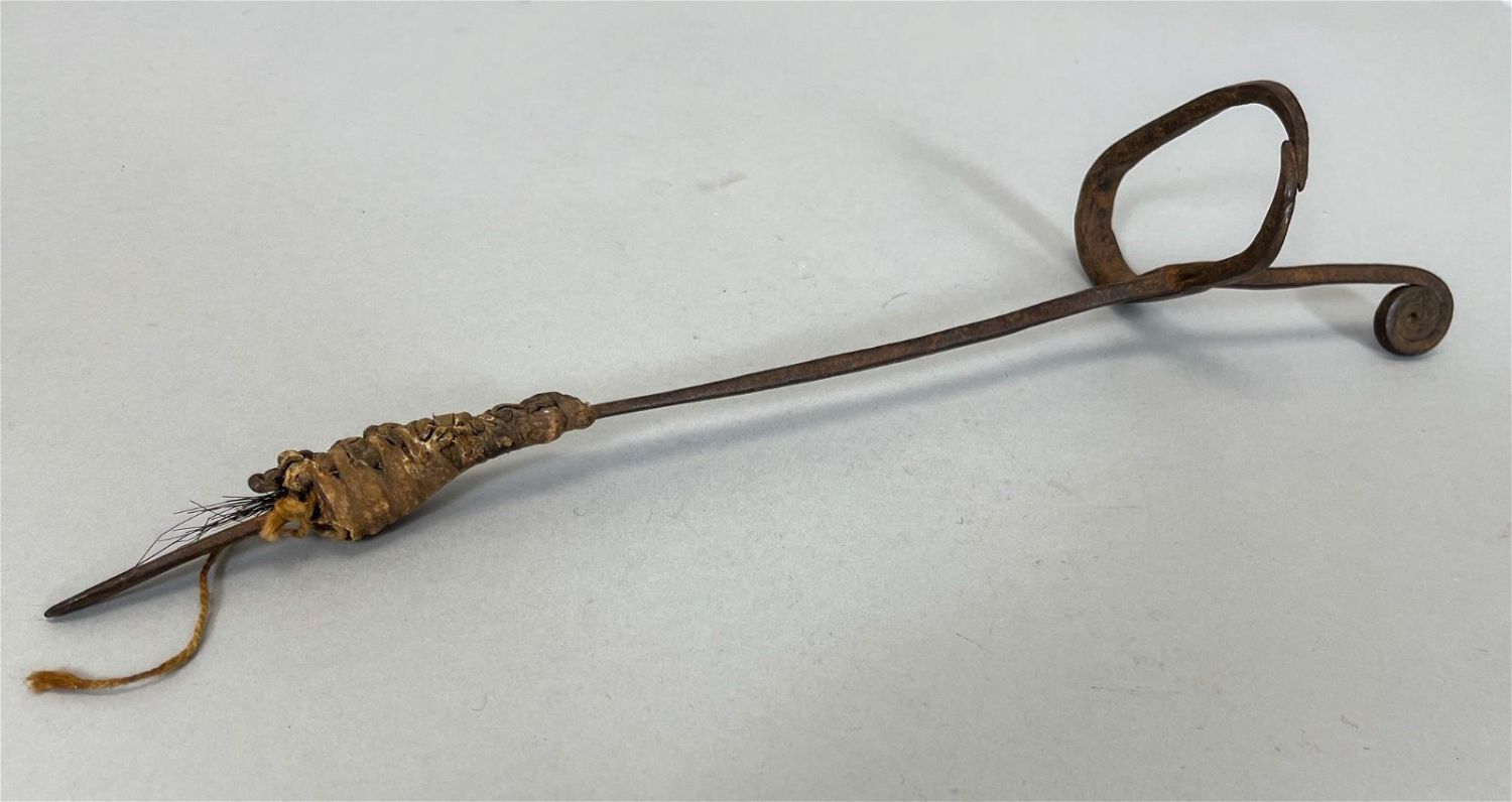 Possibly Republic of Chad, iron spear with leather accent , 13.75"h x 3.5"w