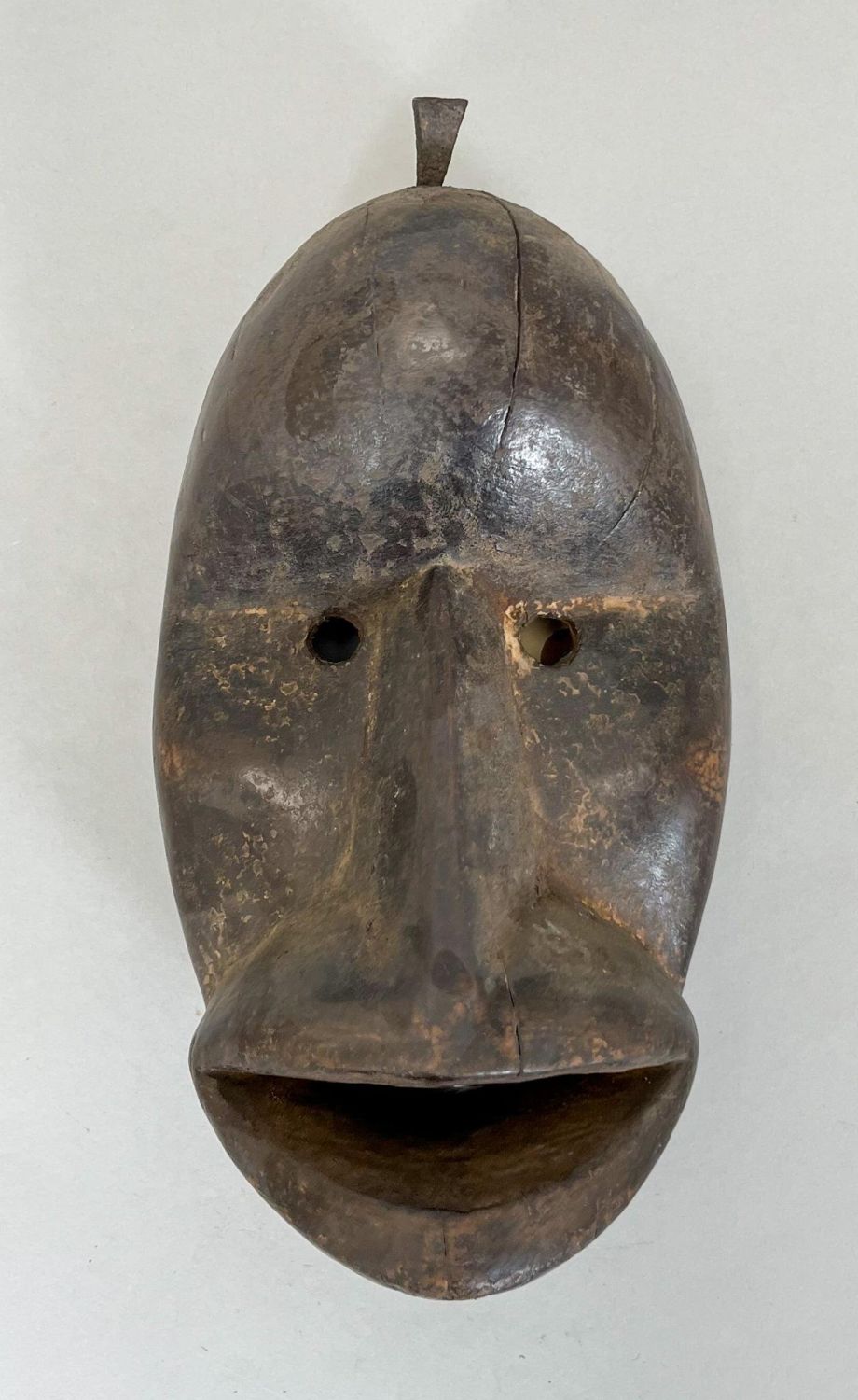 Bete People, Ivory Coast, carved wood monkey face mask, darkened patina, remnant pigment, 10"h x 6"w x 2"d