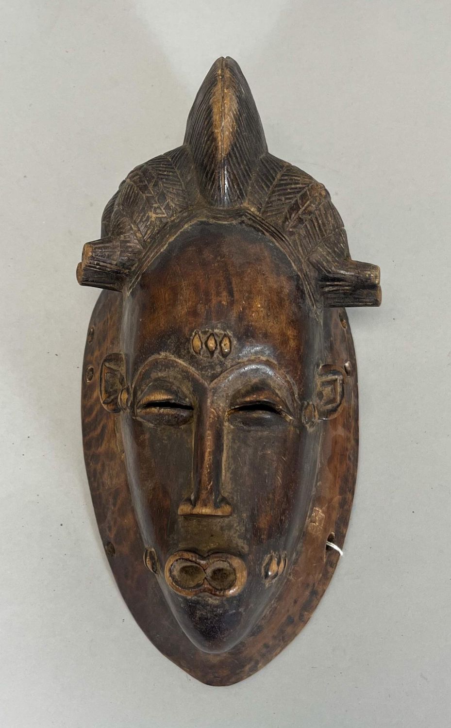 African, Baule, Ivory Coast, wood mask, darkened patina, 10.5"h x 5.5"w x 5"d