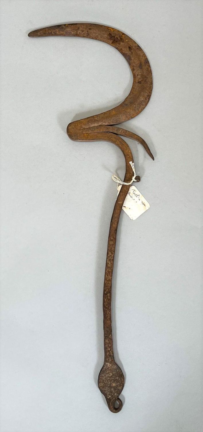 Chad, Cameroon, forged iron sickle ceremonial throwing knife, 20"h x 7.25"w