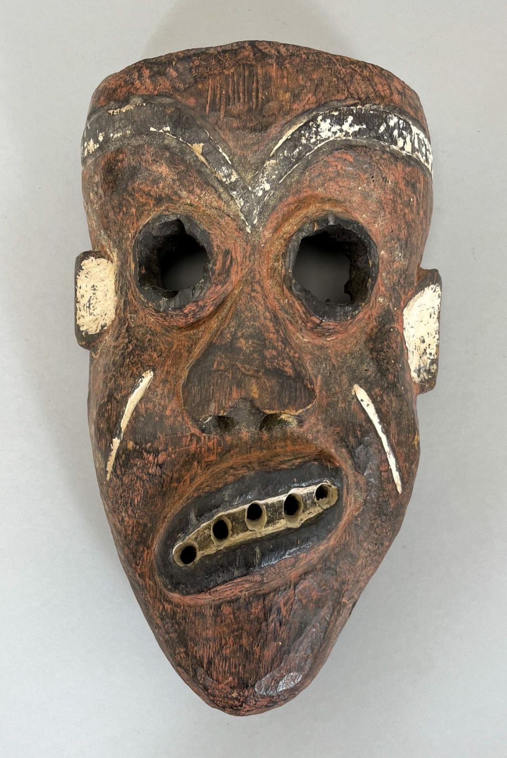 African, Pende, Zaire (DR Congo), wood mask with remnant white and red pigment, 12"h x 7"w x 2.5"d