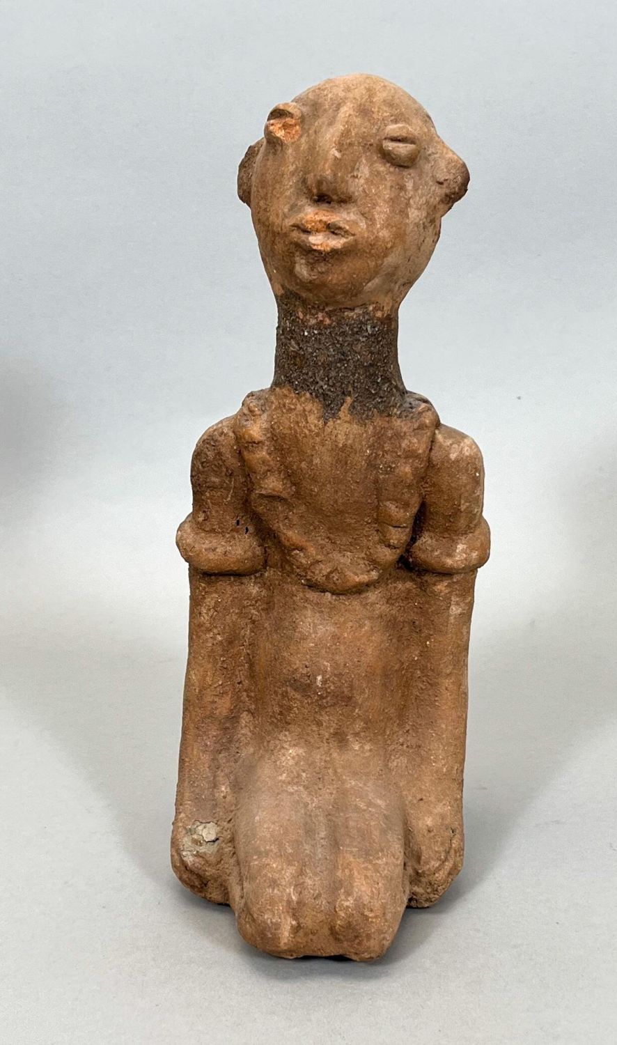 Bura-Asinda, Central Niger, ancient (Possibly 3rd – 13th C) clay kneeled figure, 11.5"h x 4.5"w