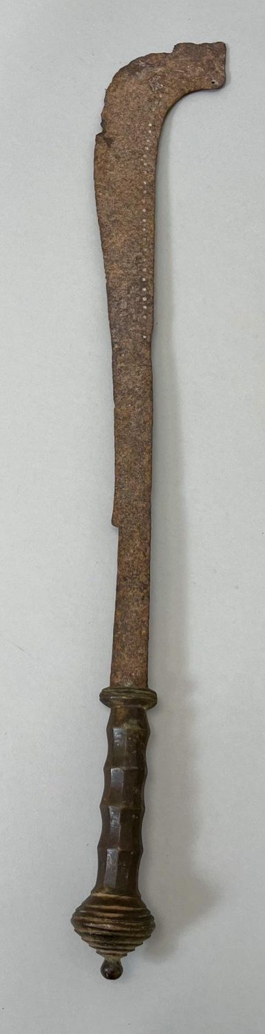 Possibly Yoruba, Nigeria, forged iron ceremonial sword with brass handle, 26.5"h