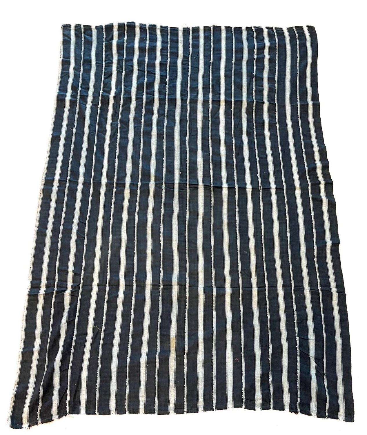 Ewe, Togo, vintage Kente woven cotton textile, black and white stripes panels sewn together, each panel approx. 3.5"w, 59"l x 40"w