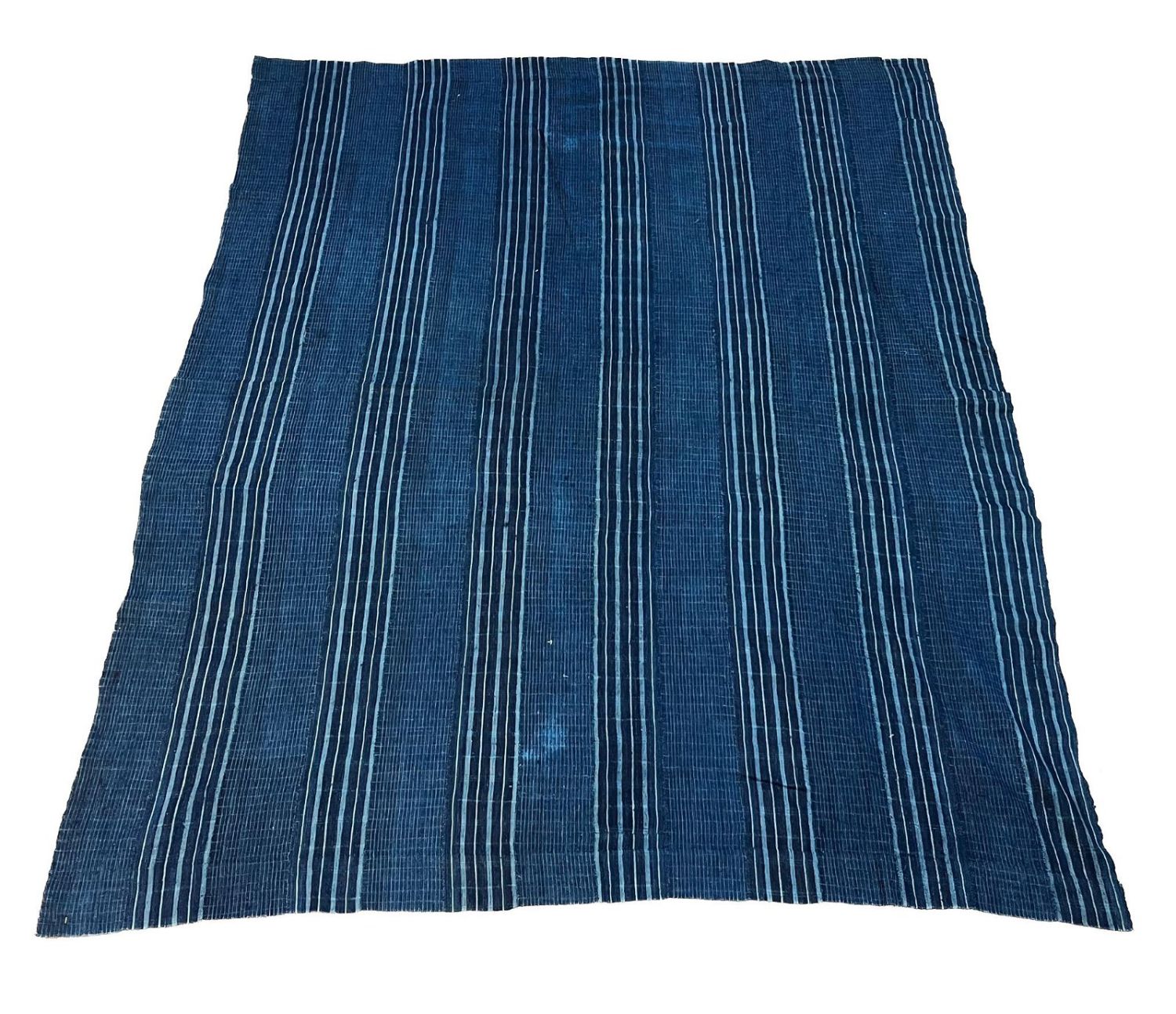Taureg, Niger, vintage woven cotton textile, indigo with light blue stripes pattern panels sew together, each panel approx. 4"w, 69"l x 56"w