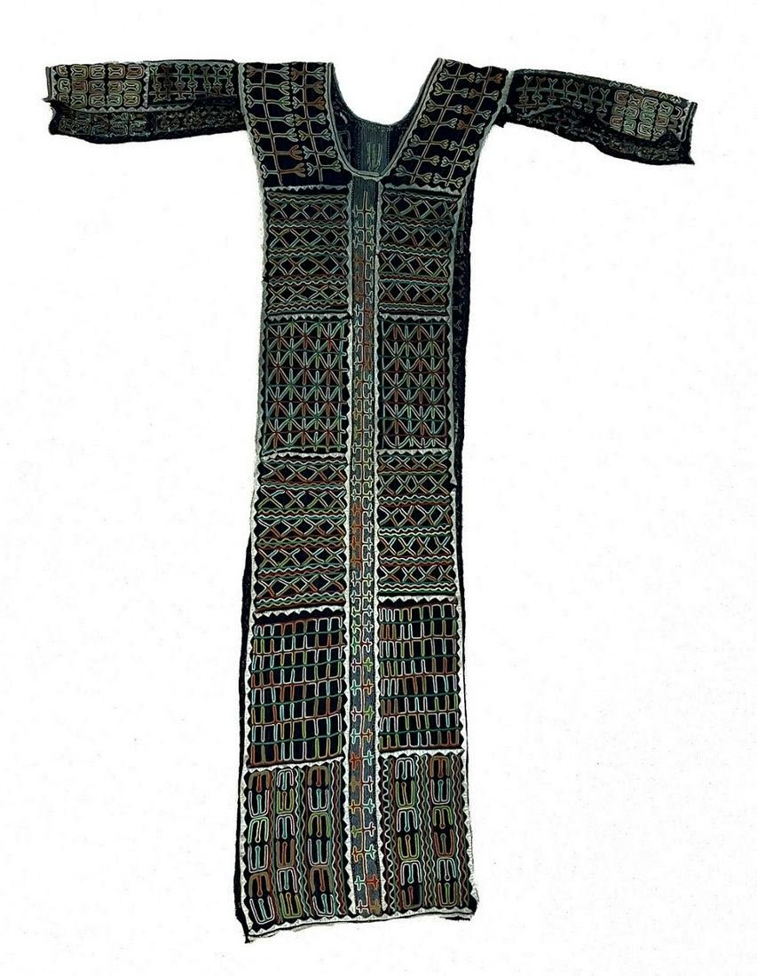 Fulani/ Wodaabe Bororo, Niger, "Yaake"man’s dance tunic, with open short sleeves, with colorful embroidery patterns and applique , 43"l x 10"w