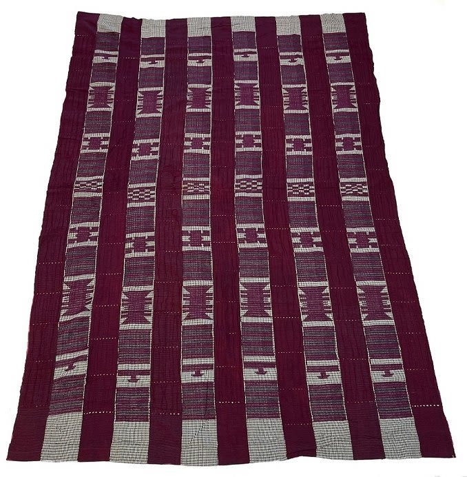 Akwete, Nigeria, woven cotton textile (made by Igbo women), purple color, embroidery, with geometric patterns, panels sewn together, each panel 4”w, 80”l x 53”w PROVENANCE: From the estate of Professor Philip Gould, New York