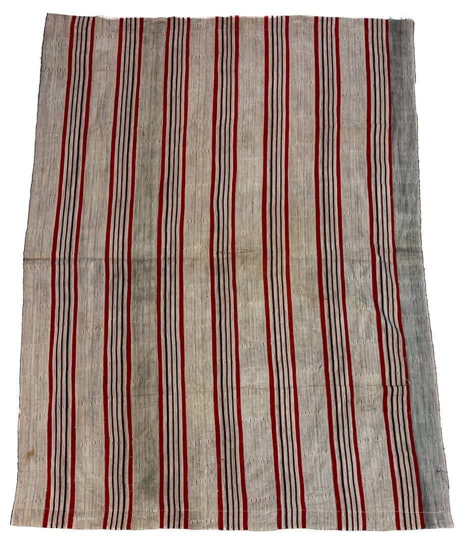 Yoruba, Nigeria, vintage woven cotton Aso Oke textile, light grey, red and black color stripe pattern, panels sewn together, each panel 4”w, 76”l x 57”w PROVENANCE: From the estate of Professor Philip Gould, New York