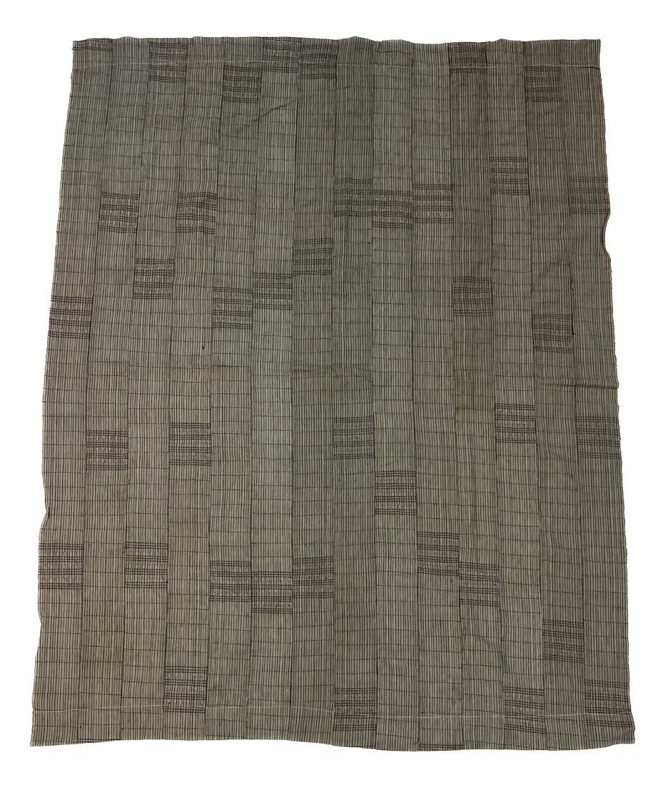 Yoruba, Nigeria, vintage woven cotton Aso Oke textile, grey and black color stripes, panels sewn together, each panel 4”w, 73”l x 56”w PROVENANCE: From the estate of Professor Philip Gould, New York