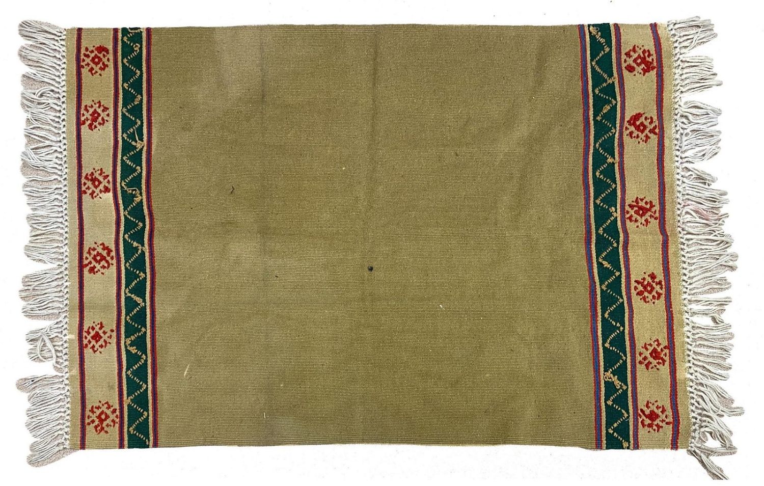 Vintage handmade Turkish Kilim prayer rug, 45"l x 37"w Condition: Fair overall condition, slight signs of wear, color bleeding Dimensions: 45 x 37 in