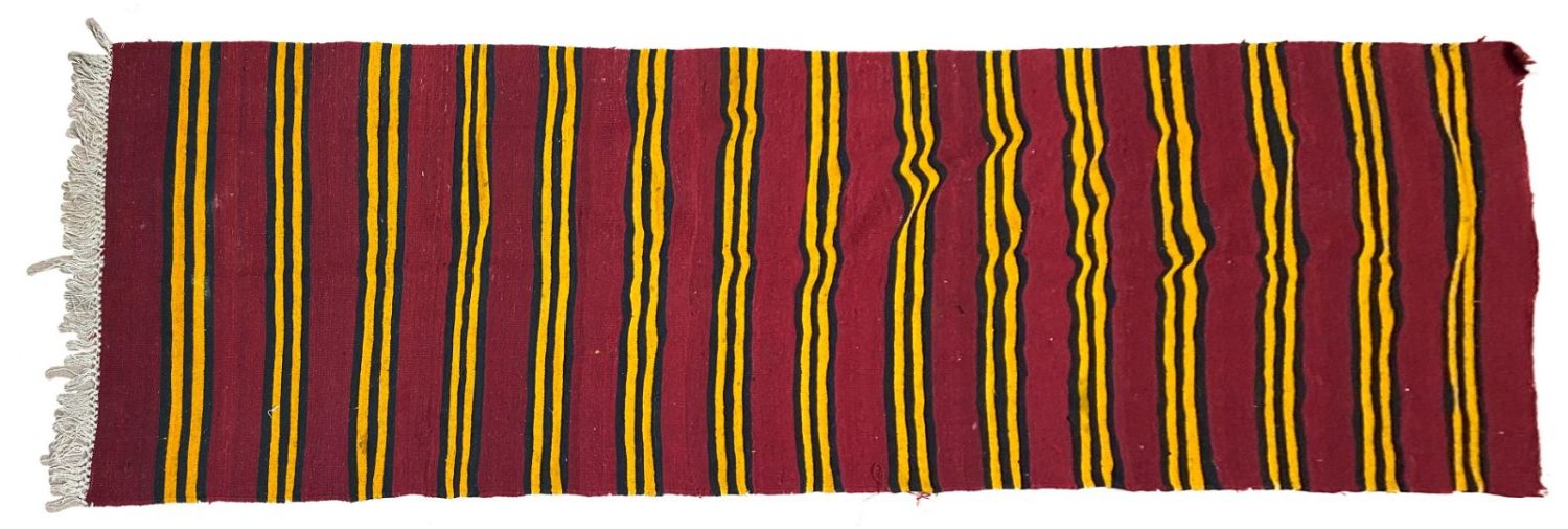 Vintage handmade Turkish Kilim runner, 131"l x 39"w Condition: Fair, some stains, some dirt, some color bleeding Dimensions: 131 x 39 in