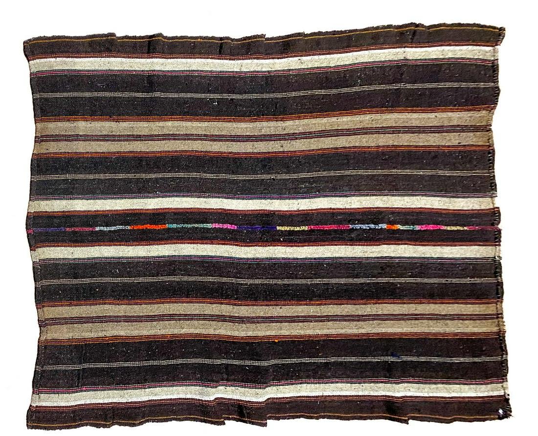 Vintage handmade possibly Turkish or Moroccan area rug, 84"l x 66"w Condition: Overall good condition, a few minor holes, and stains Dimensions: 84 x 66 in