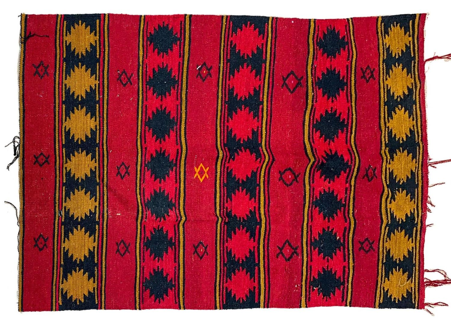 Vintage handmade Turkish Kilim area/prayer rug, 55"l x 39"w Condition: Fair, holes, fraying on edge, signs of wear Dimensions: 55 x 39 in
