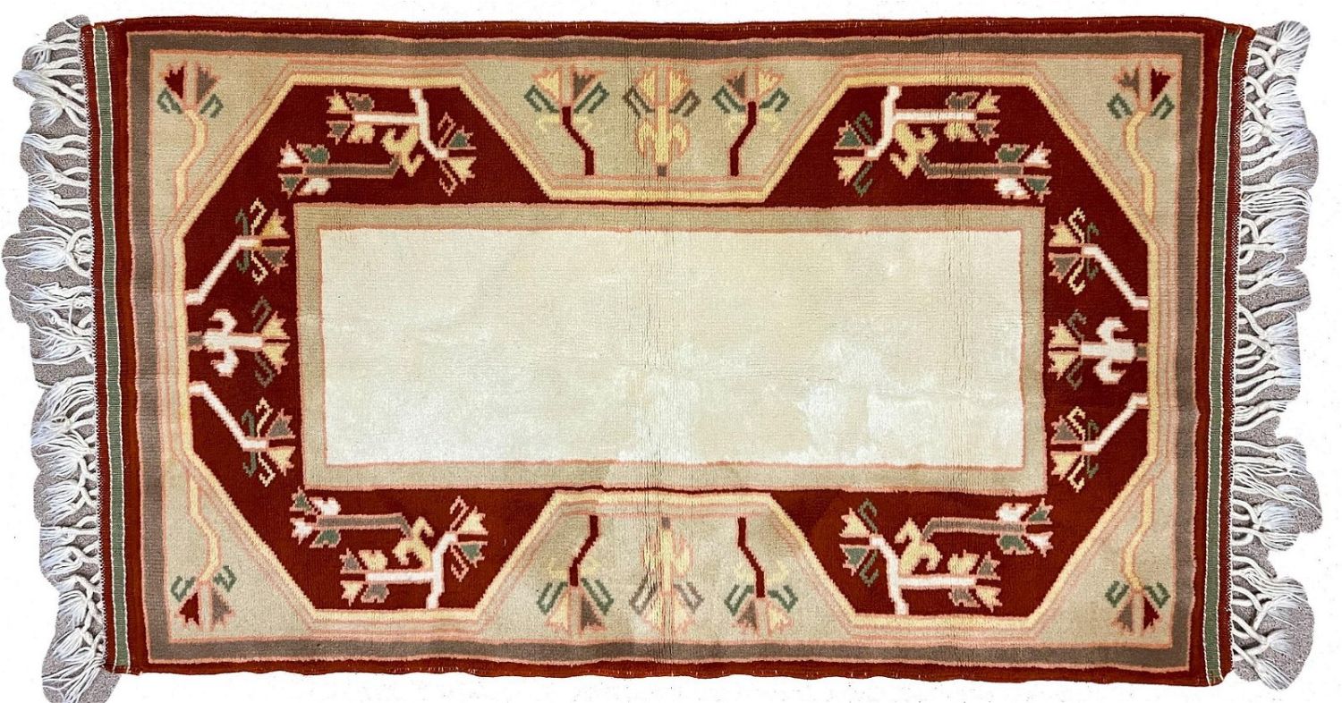 Vintage handmade Turkish Kilim area rug/prayer rug, 53"l x 32"w Condition: Good, slight wear Dimensions: 53 x 32 in