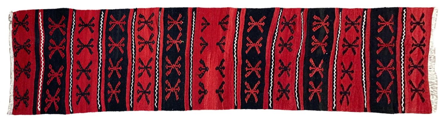Vintage handmade Turkish Kilim runner, 92"l x 26"w Condition: Good, a few small holes Dimensions: 92 x 26 in