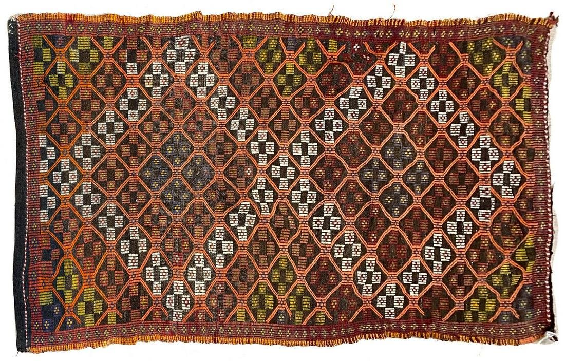 Vintage handmade Soumak area rug, 114"l x 47"w