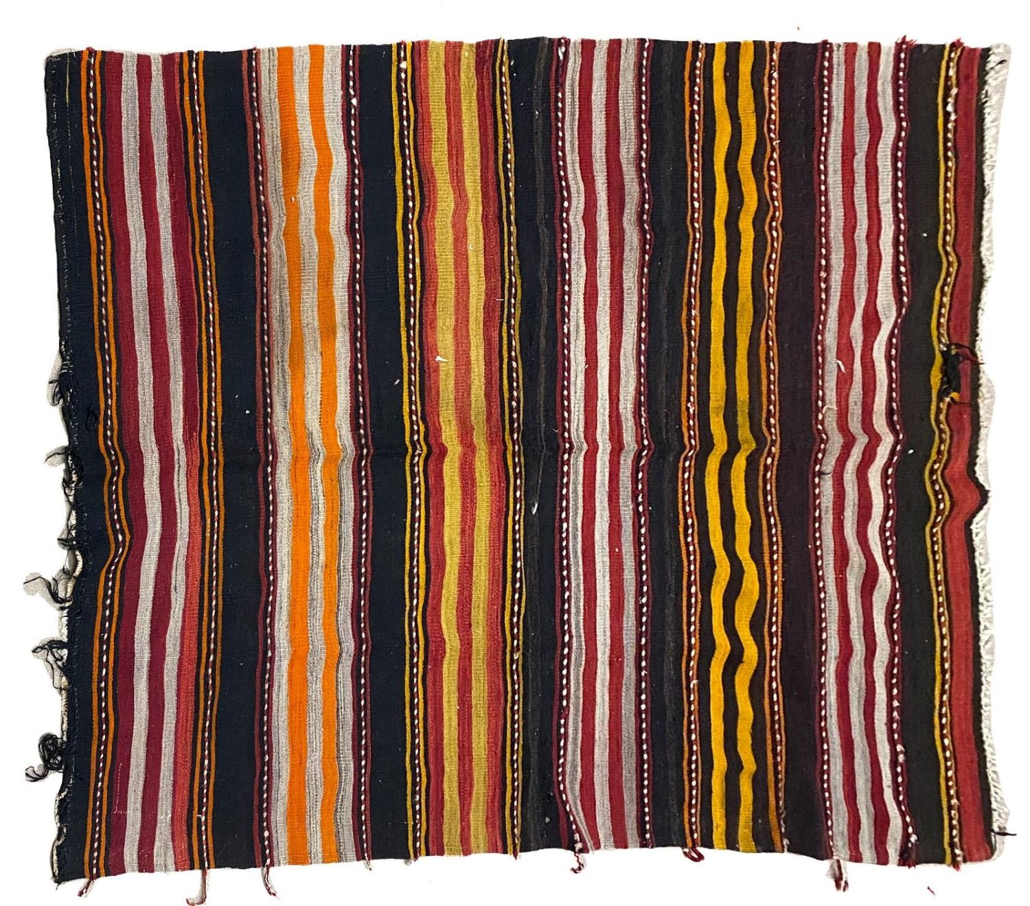 Vintage handmade Turkish Kilim area rug, 85"l x 50"w Condition: Fair, signs of wear, a few holes, some staining Dimensions: 85 x 50 in