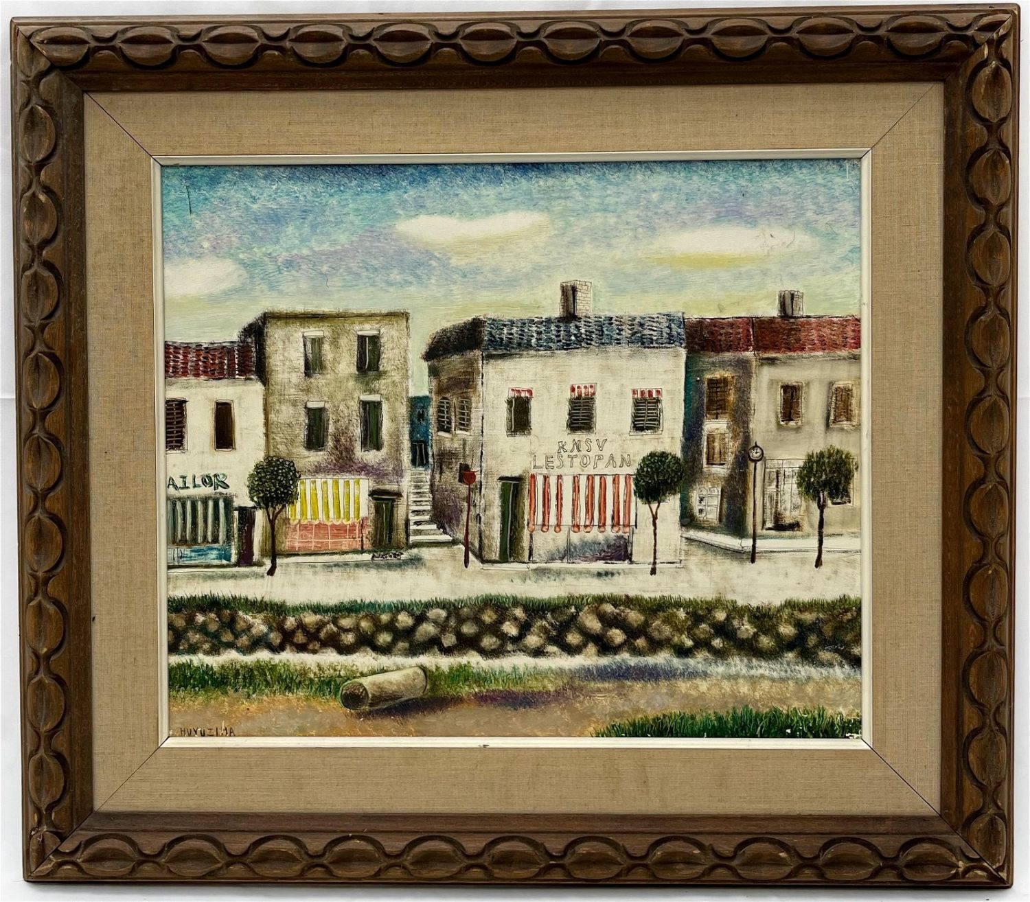 oil on canvas, signed Huyuzima lower left, 14.5”h x 17.5”w (sight) 21.5” x 25” (frame)