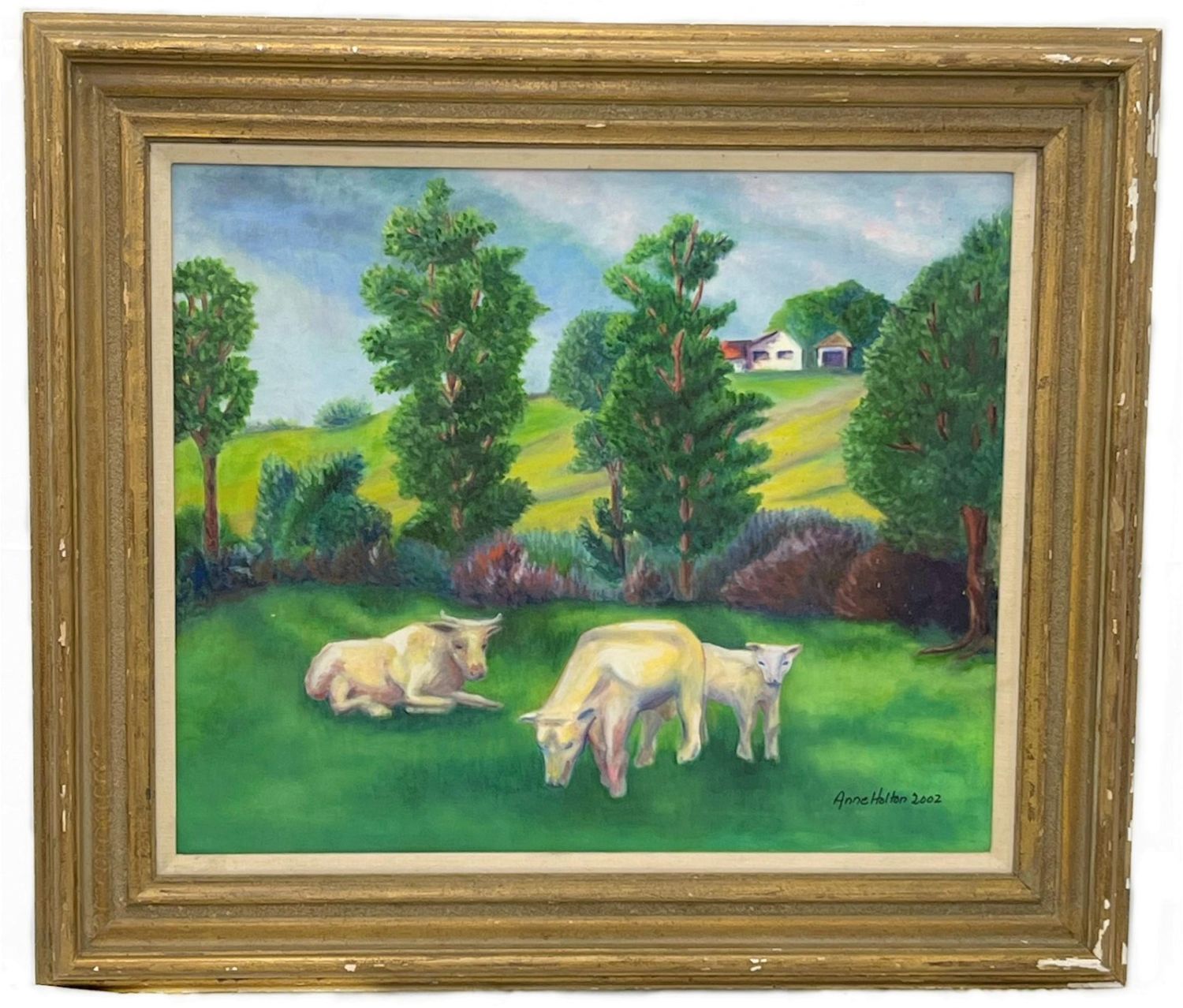 Pastoral Cows, Oil on Canvas, Signed Anne Holton