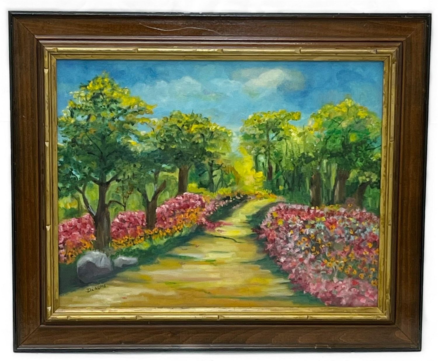 oil on canvas, signed Dinome lower left, 13.25”h x 17”w (sight) 18”h x 22”w (frame) Condition: Good Dimensions: 18 x 22 in