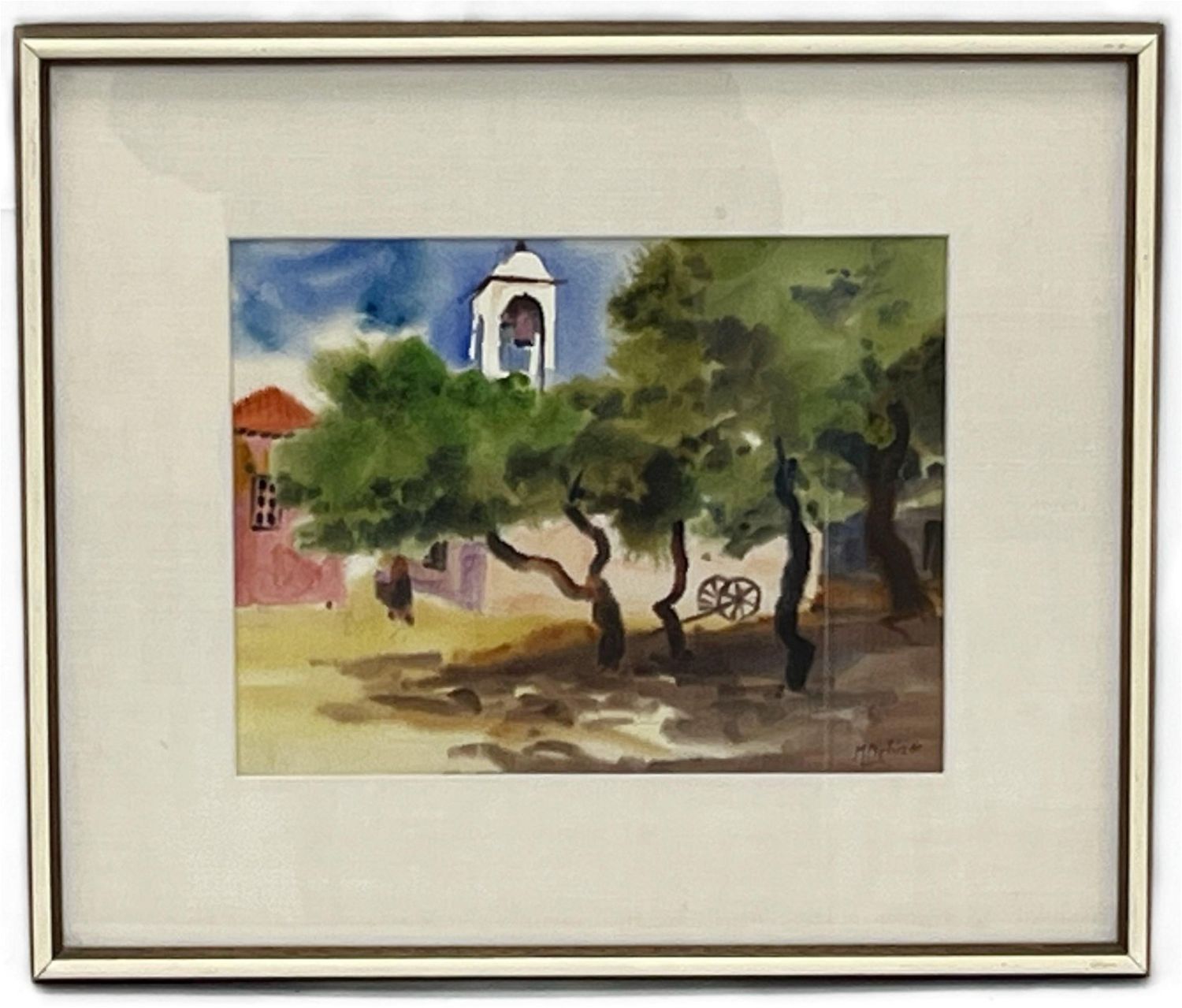 watercolor on paper, signed M. Ortiz dr, framed under glass, 8.5”h x 11”w (sight) 15”h x 18”w (frame) Condition: Good Dimensions: 15 x 18 in