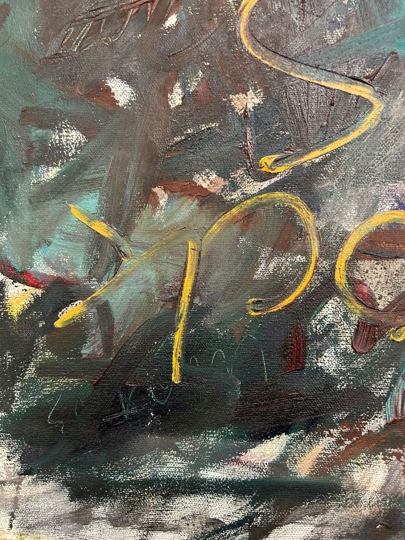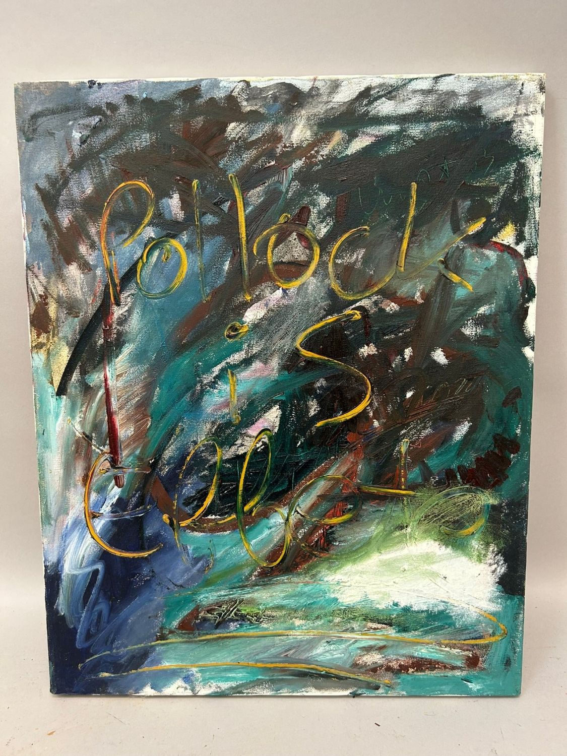 Modern Contemporary Oil on Canvas Painting, canvas size 20"h x 16"w Condition: Good, minor dent on upper right side