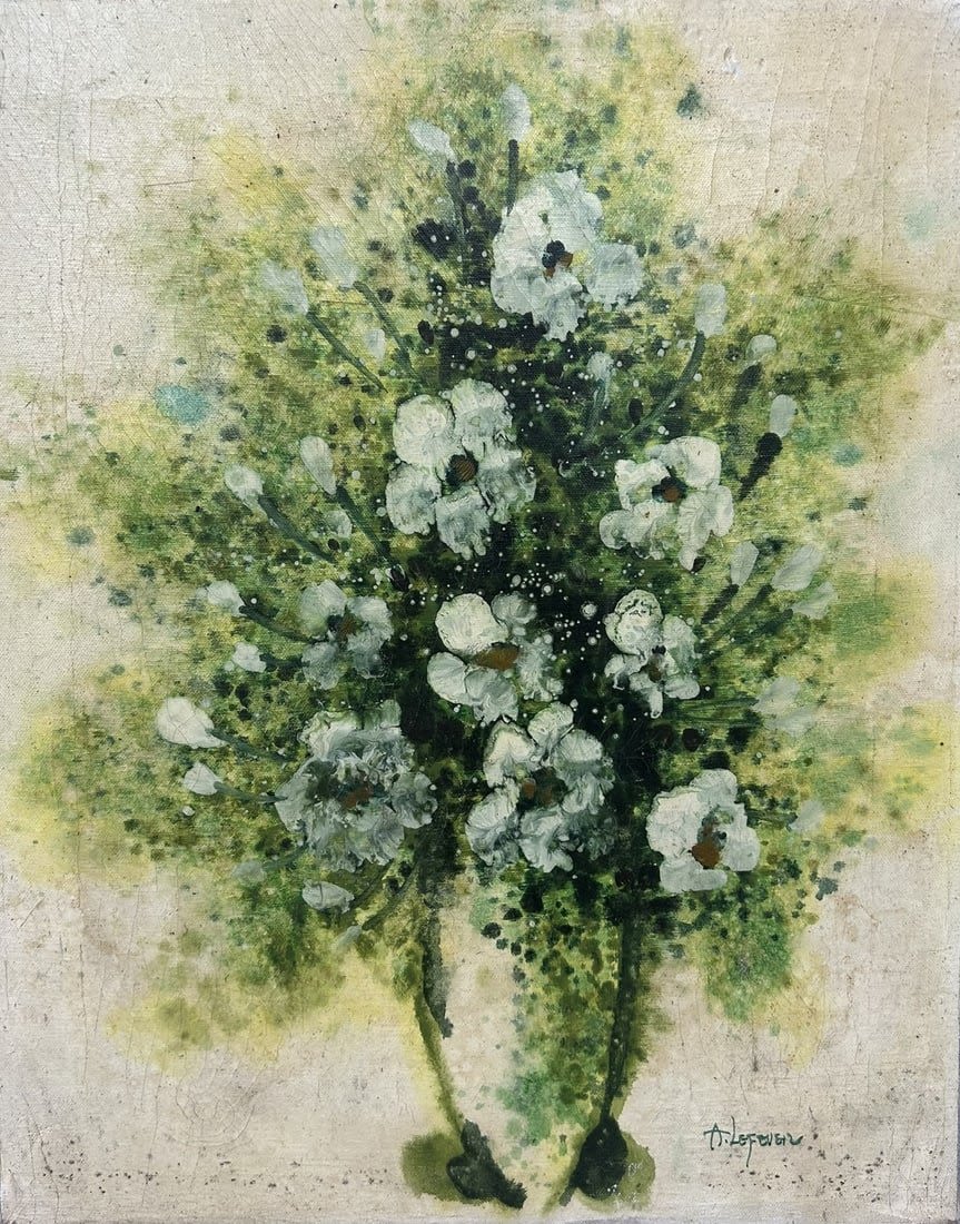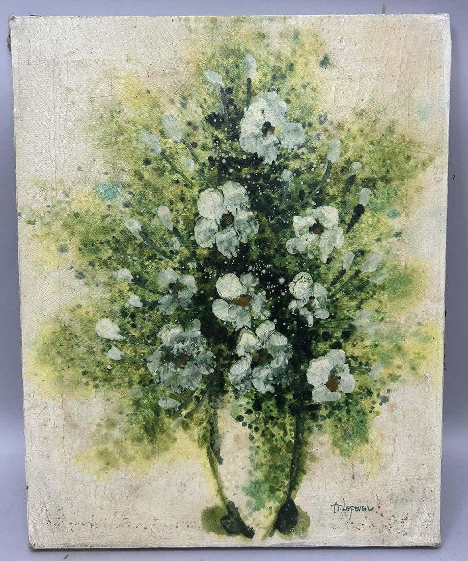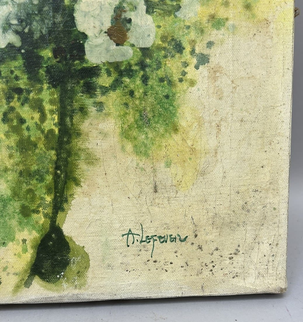Vintage Oil on Canvas Still Life Painting, Signed by A. Lefever at Lower Right, canvas size 20"h x 16"w Condition: Poor, craquelures, sign of aging
