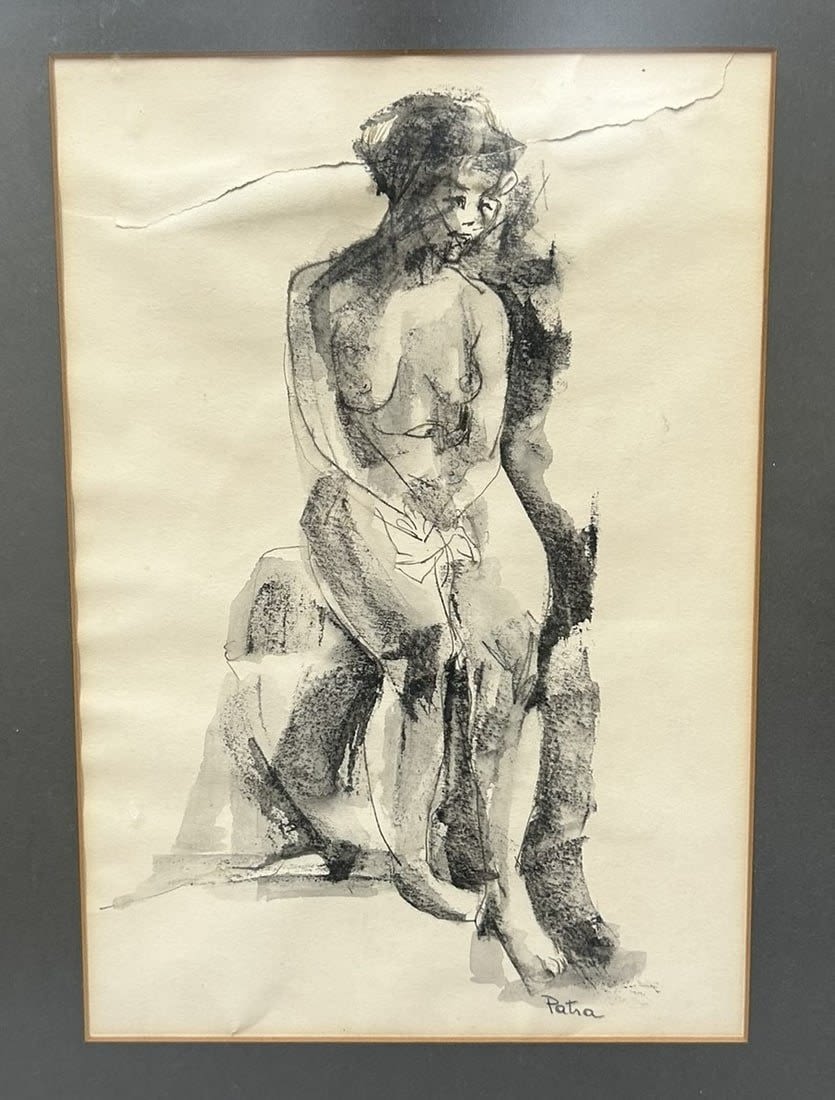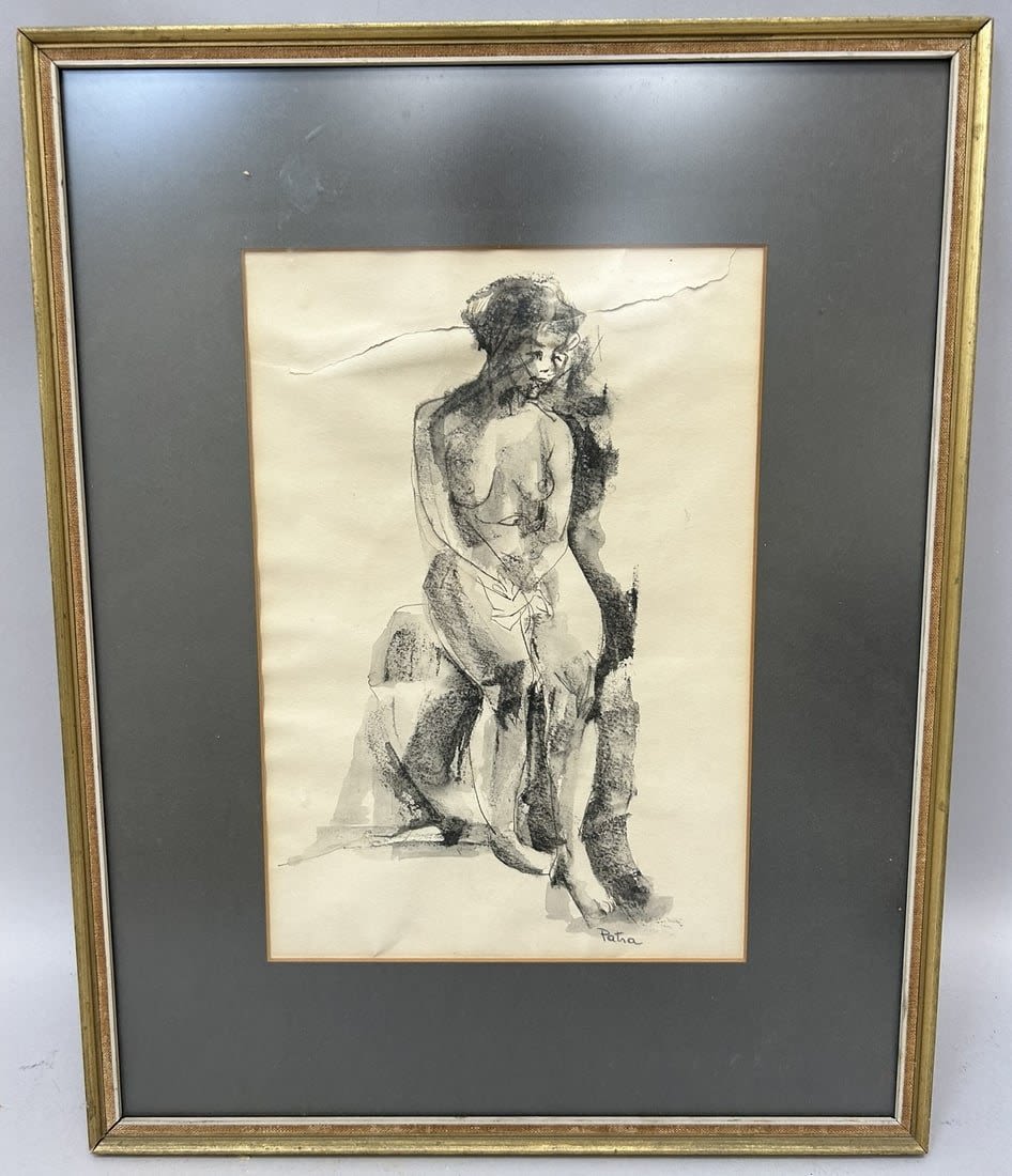 Framed Watercolor Nude Woman Portrait Signed by Paha at Lower Right, Frame: 18"h x 14"w – Sight: 11.5"h x 8.5"w Condition: Poor, a tear on painting at the top
