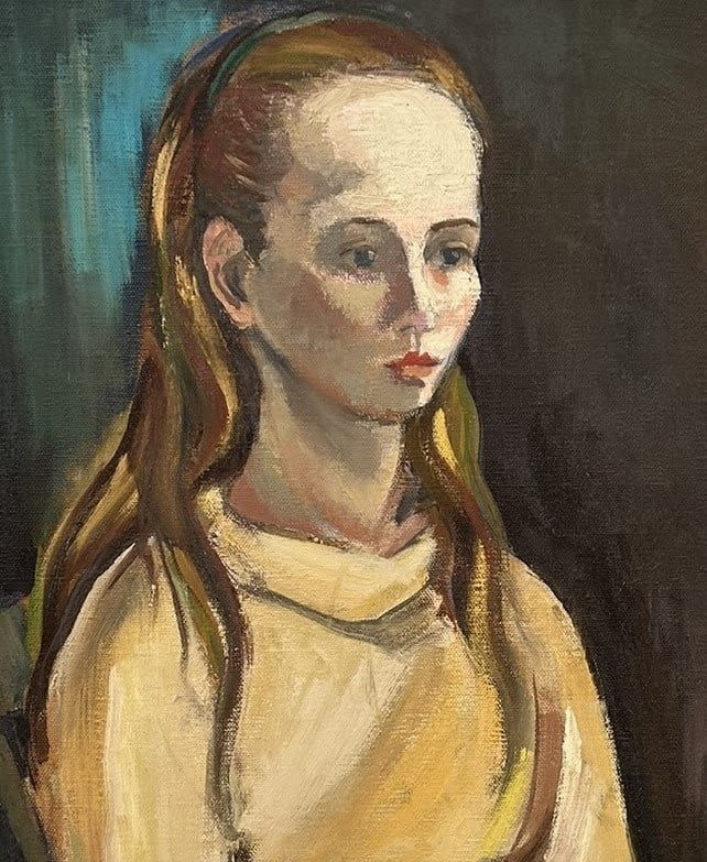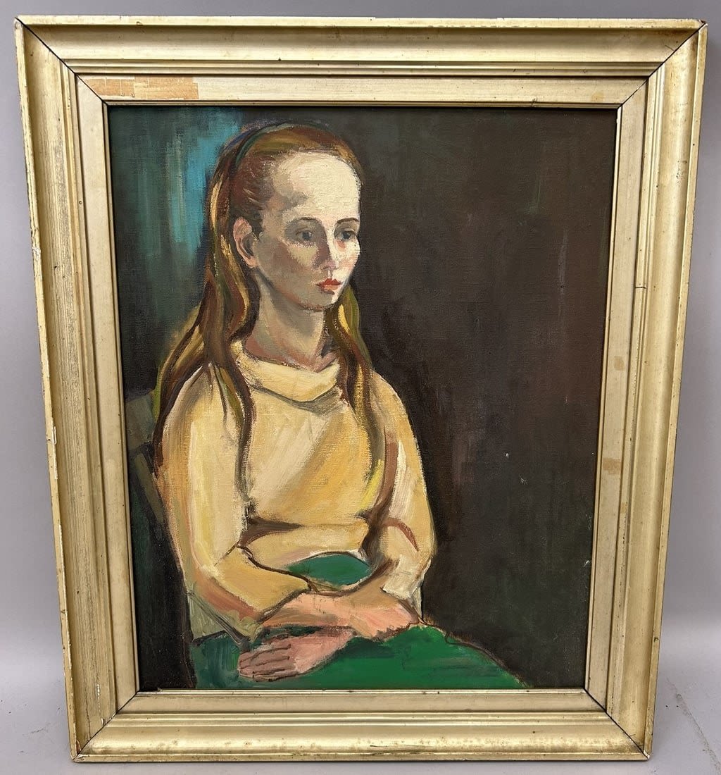 Vintage Framed Oil on Canvas Woman Portrait, Unsigned, Frame: 24"h x 20 w -Sight: 19.5"h x 15.5"w Condition: Good, minor chips and scratches on frame
