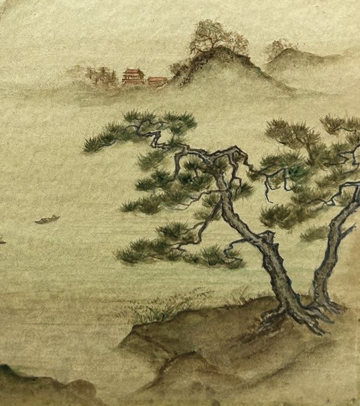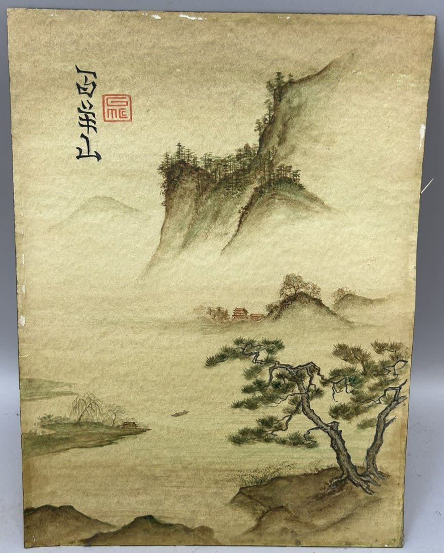 Watercolor on Paper Asian Landscape