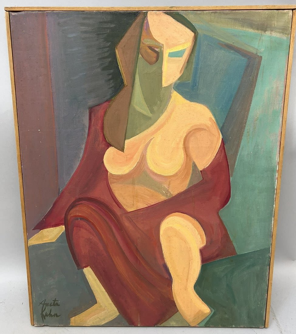 Framed Oil on Canvas Expressionist Portrait of A Woman, Signed by Anita Kahn, Frame:24.5"h x 19.5"w -Sight: 24"h x 19"w