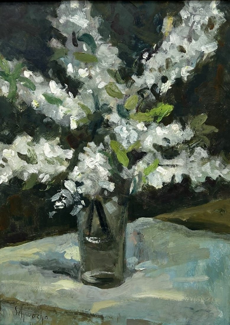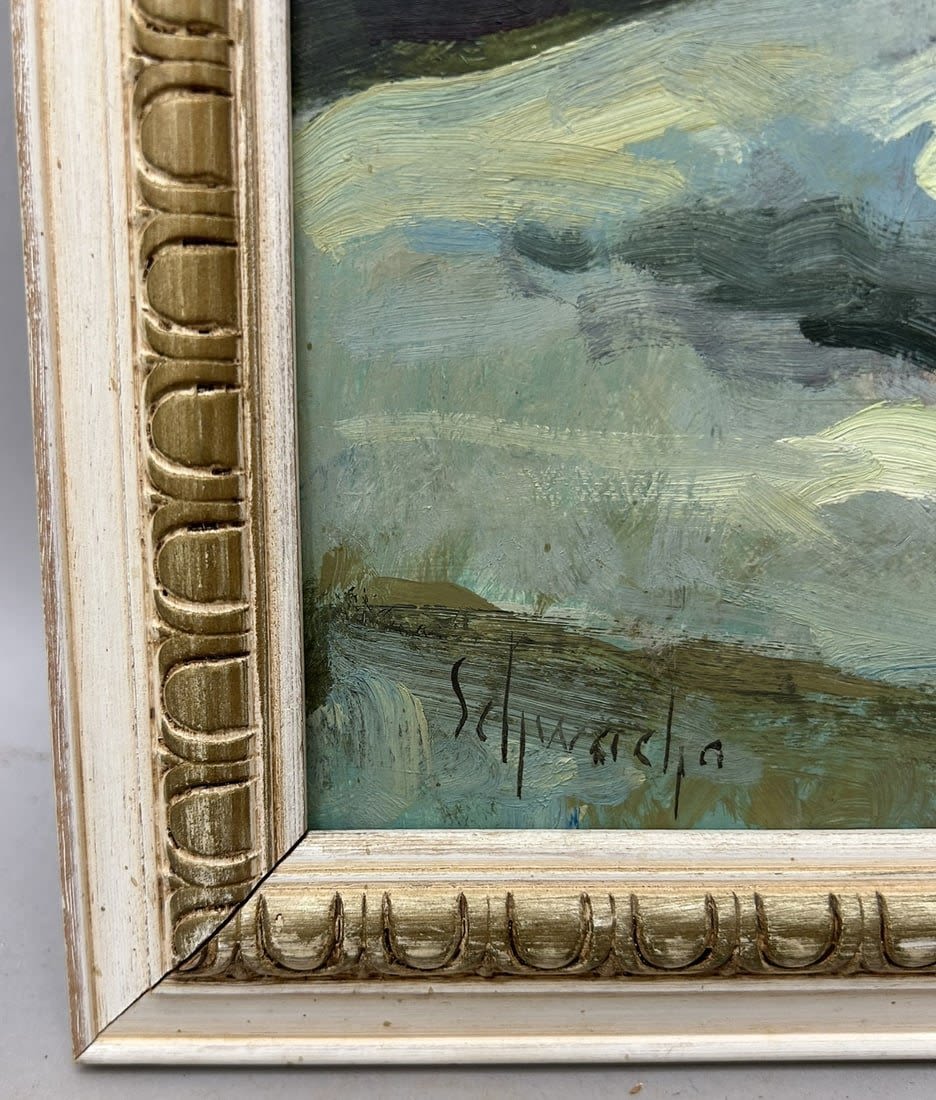 Framed Oil on Board Still Life Painting, Signed by Schwacha, Frame: 18.5"h x 14.5"w -Sight: 15.5"h x 14.5"w Condition: Good, minor scratches and chips on frame