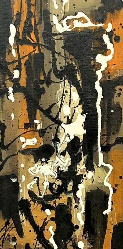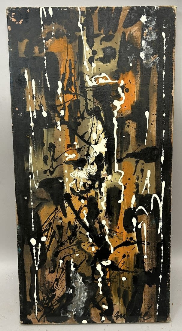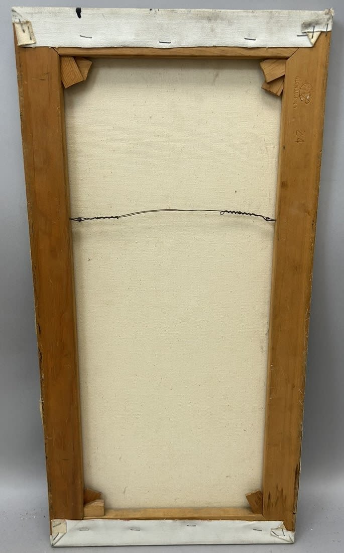 Contemporary Oil on Canvas Abstract Painting, Illegibly Signed at lower right, canvas size 24”h x 12”w Condition: Good, minor chips and scuffs