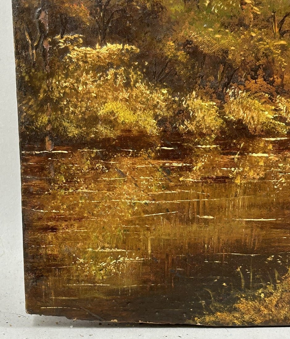Vintage Oil on Woodboard Landscape Painting, Illegibly Signed at Lower Right, board size 8”h x 12”w