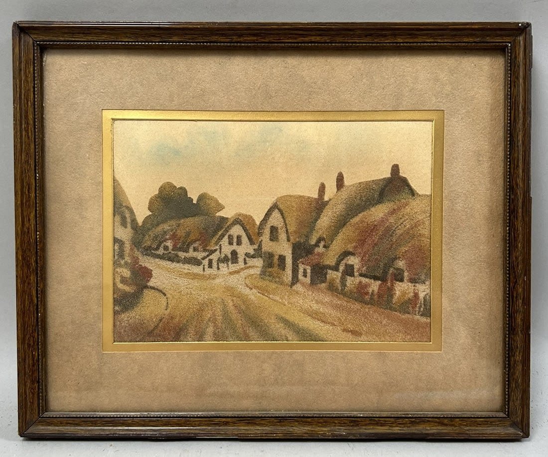 Framed Vintage Art Print, Made by the Famous Coloured Sands of Alum Bay, I.W., Title: Old Village, Shanklin, frame size 8.5”h x 10.5”w and sight size 5”h x 7”w