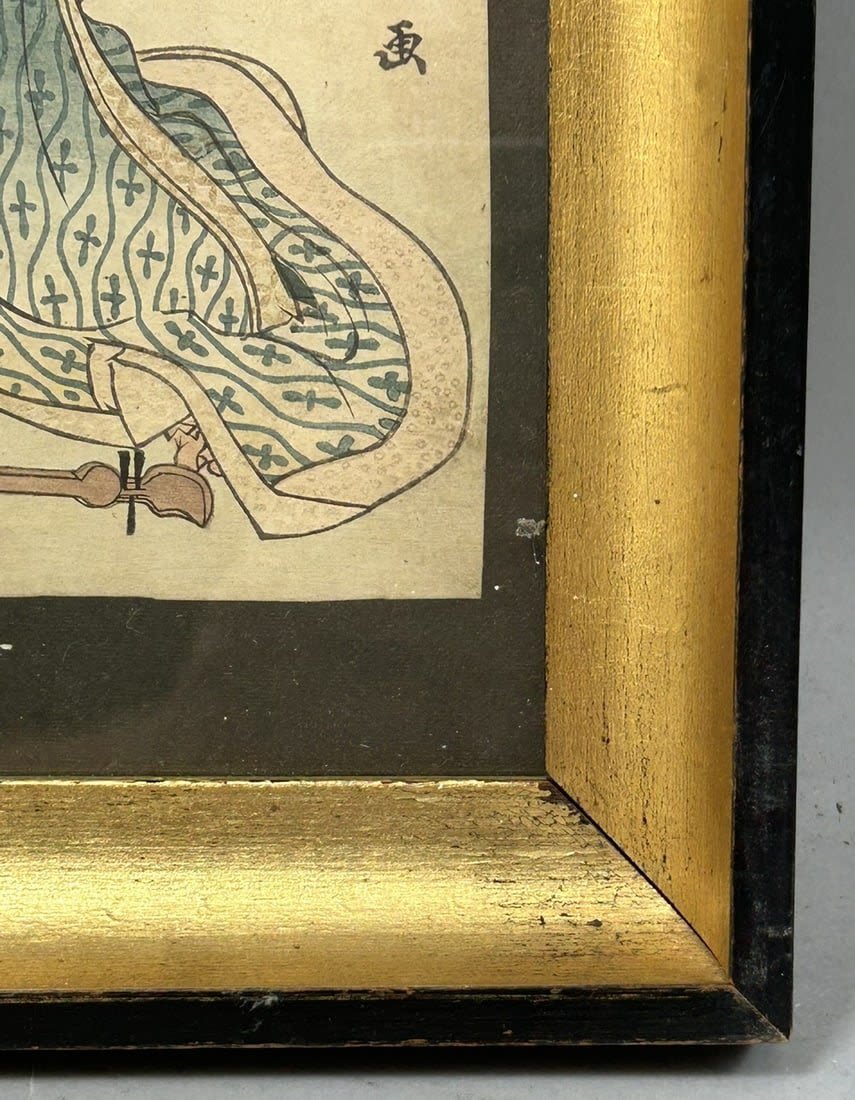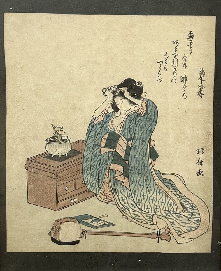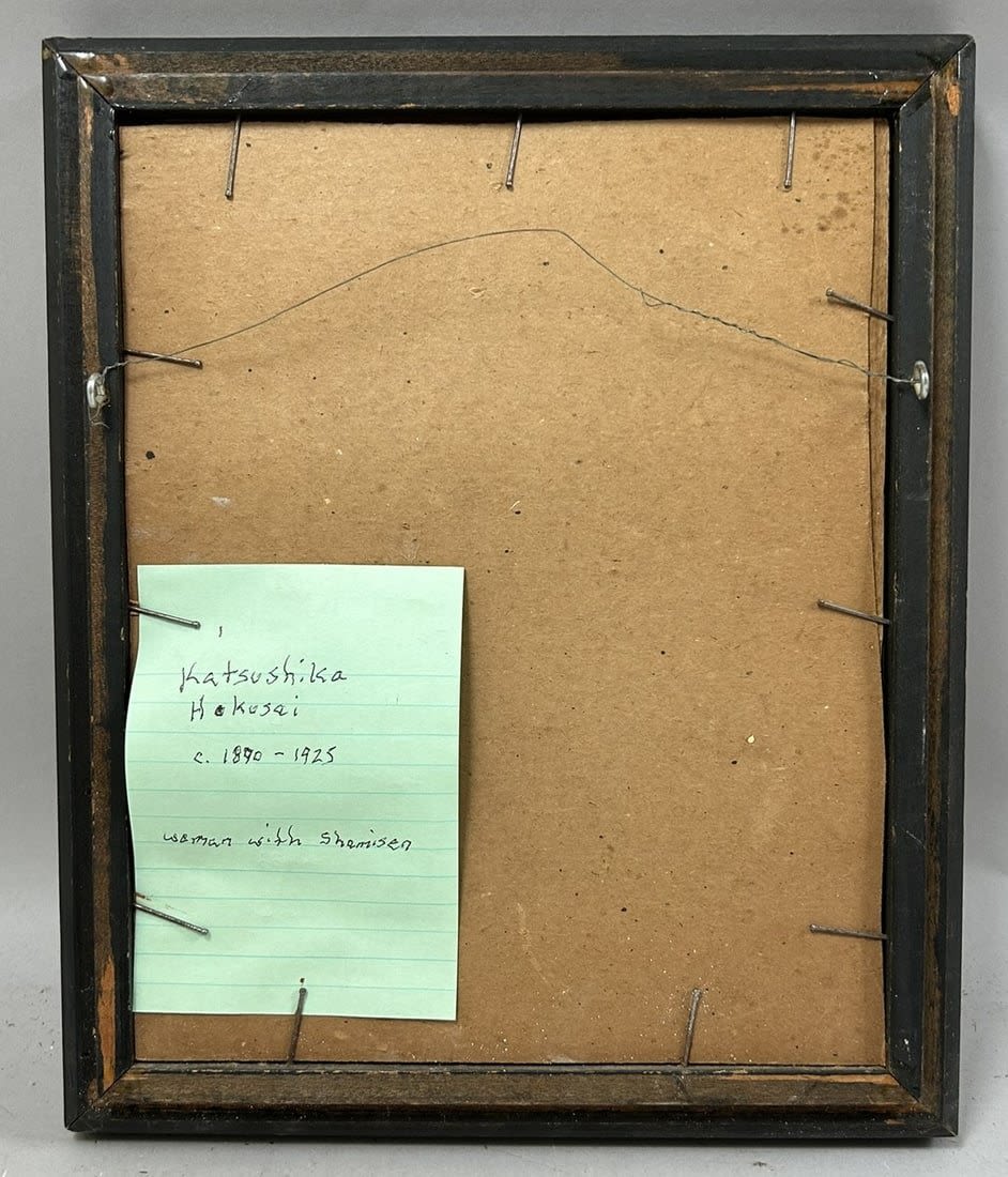 Antique Framed Watercolor and Pencil Drawing Asian Art, Woman Portrait by Katsushika Hakusai c.1890-1925, frame size 12”h x 10”w and sight size 8”h x 7”w