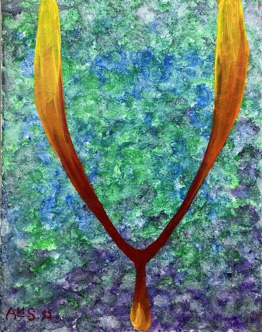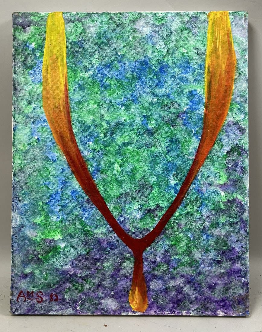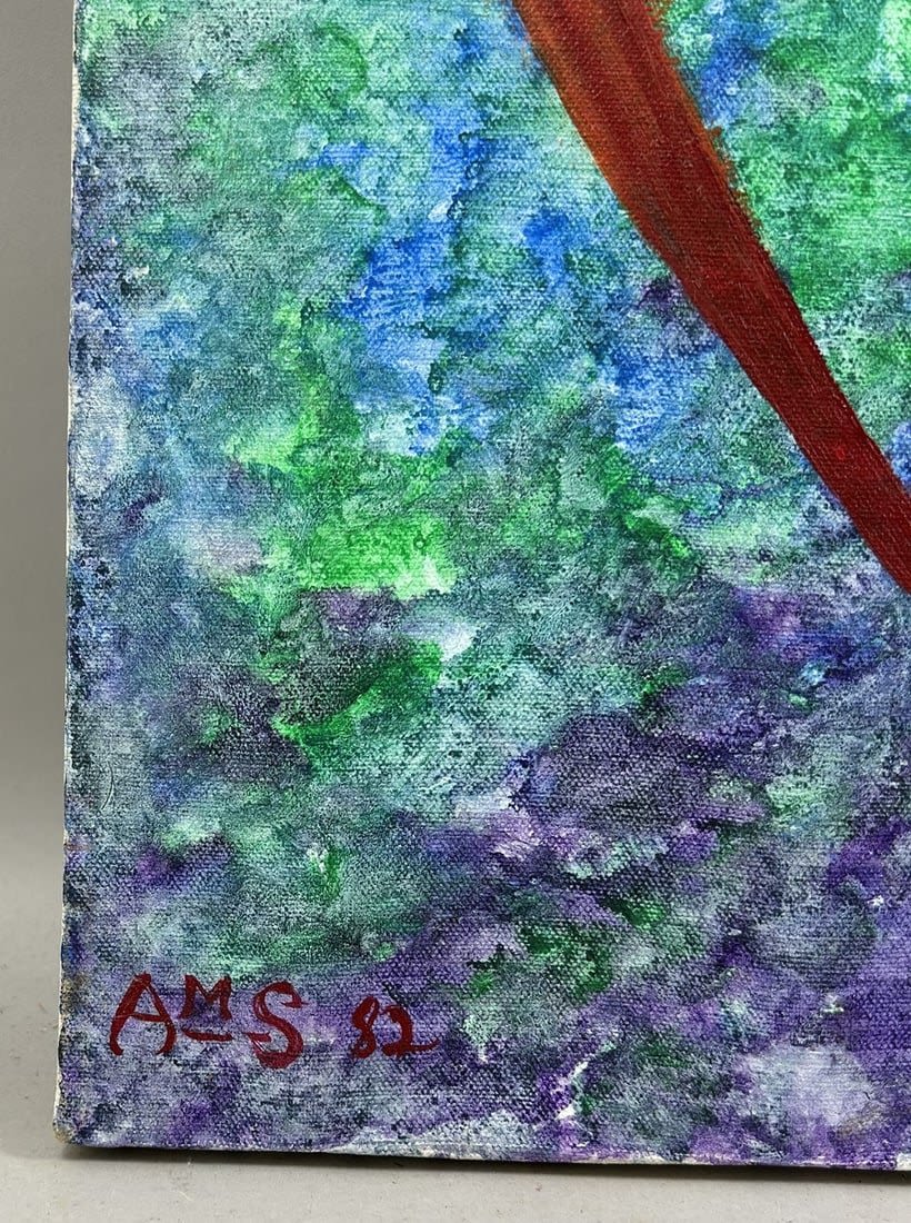 Modern Oil on Canvas Abstract Painting, Signed by AMS, 87 at Lower Left, canvas size 18”h x 14”w Condition: Good
