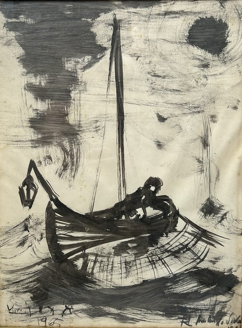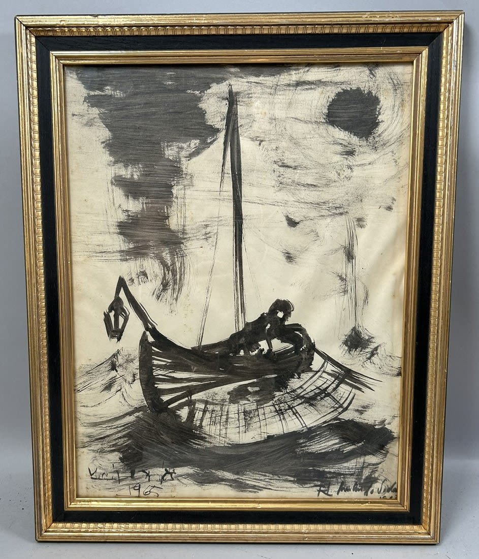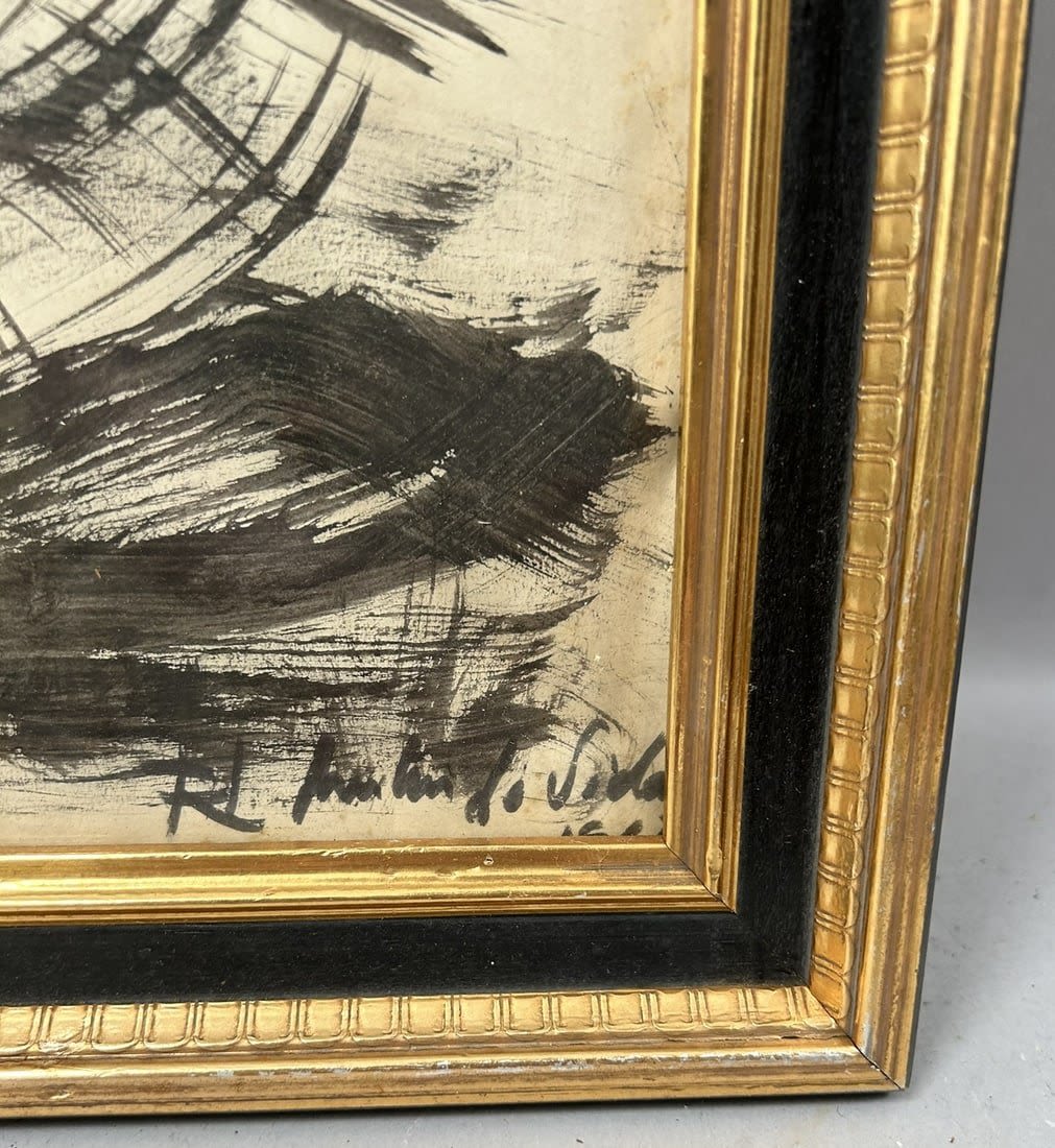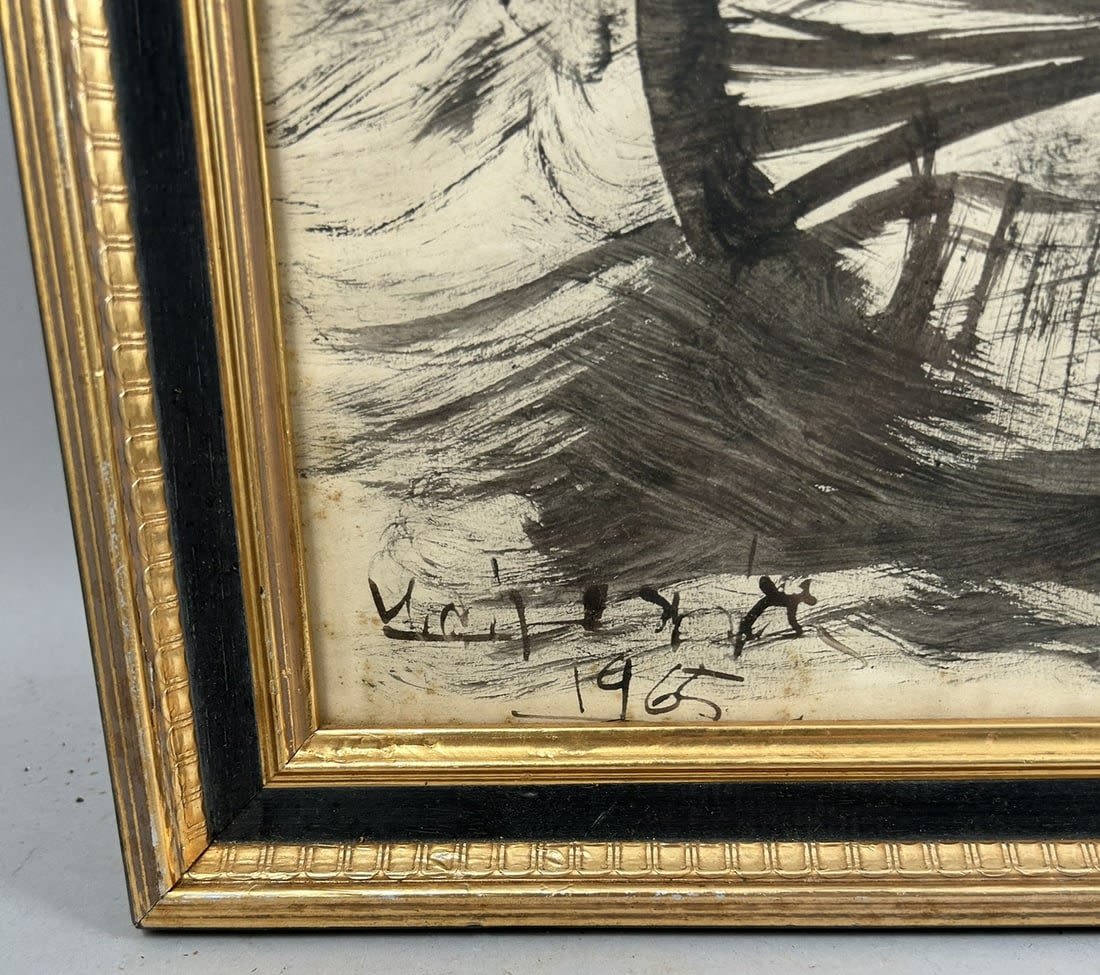 Vintage Framed Seascape Illustration, Illigibly Signed at Lower Left, frame size 20”h x 16”w and sight size 17”h x 13”w Condition: Good, minor scratches on frame
