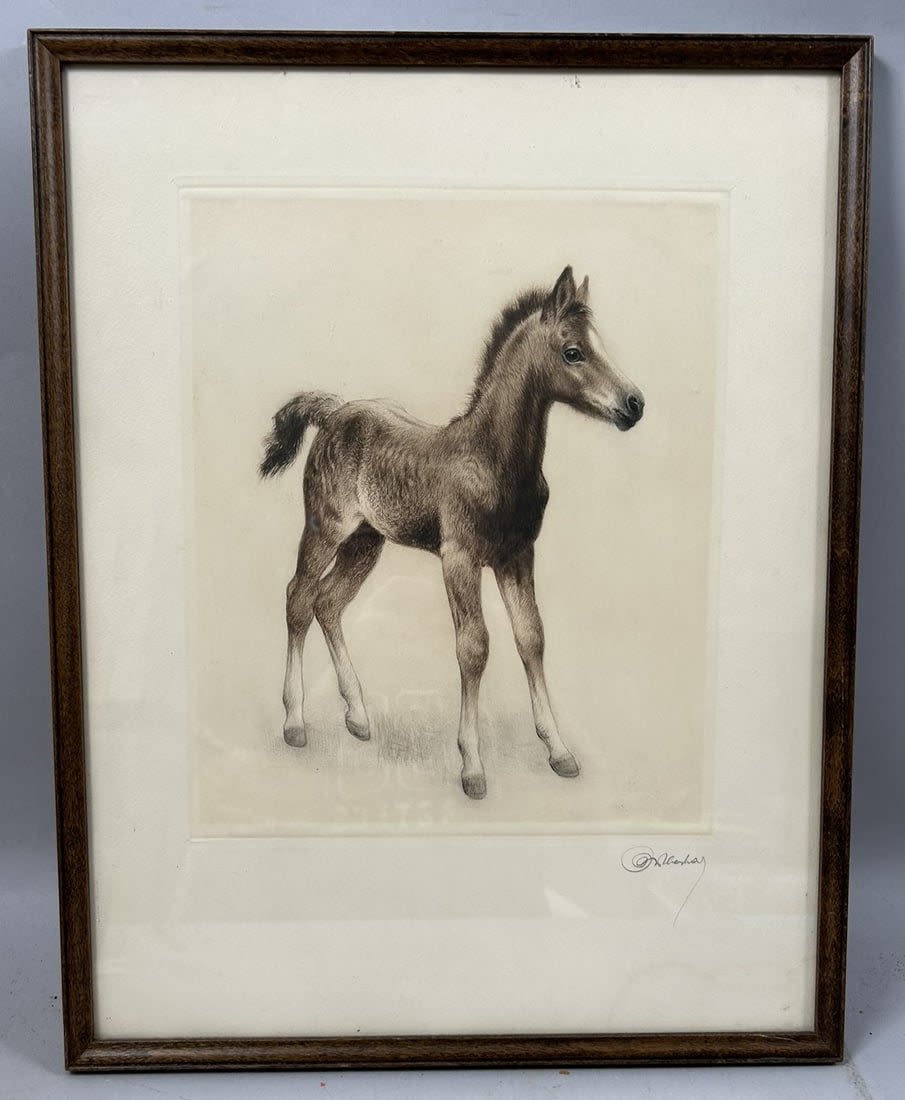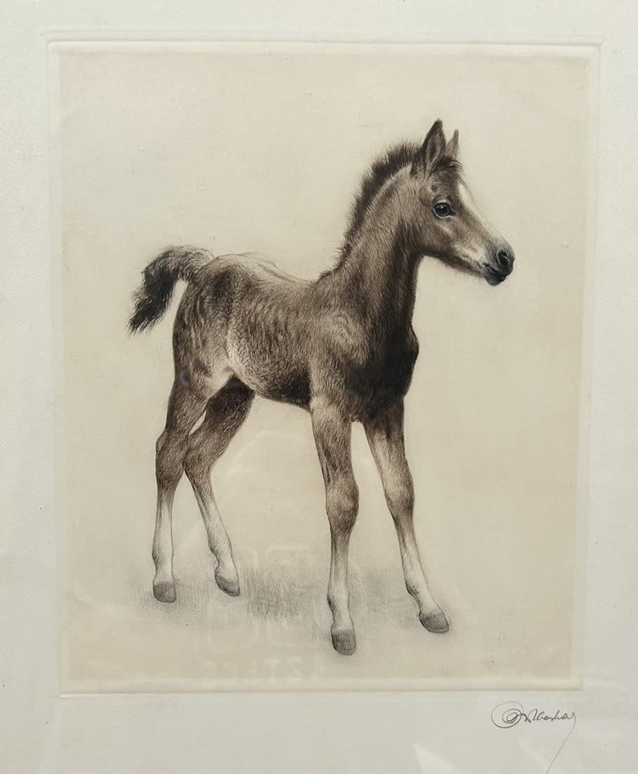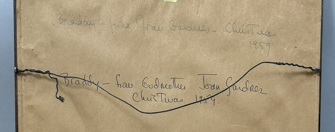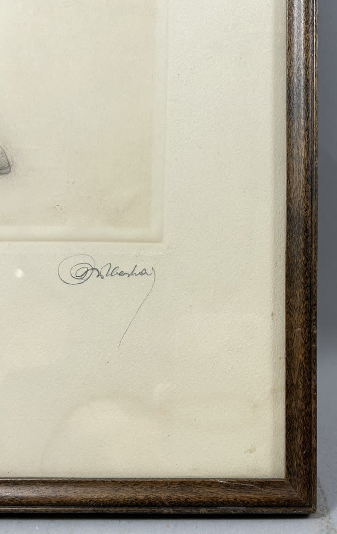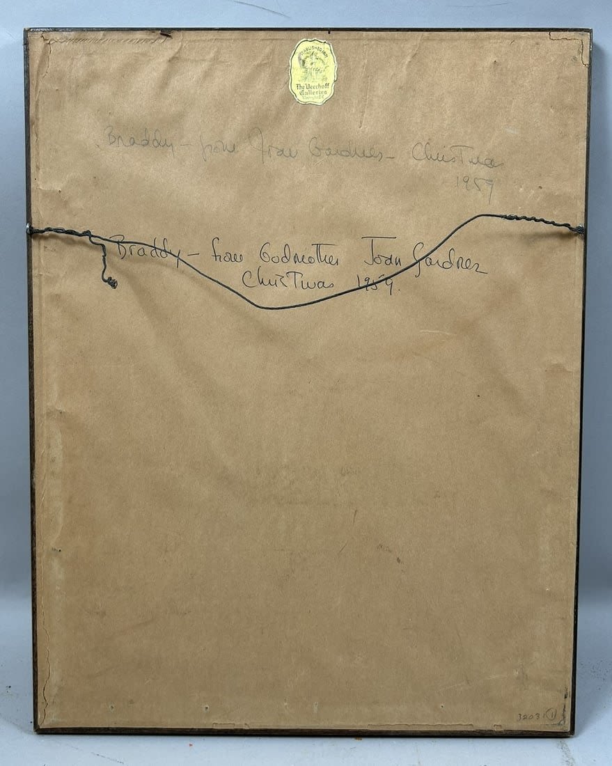 Vintage Art Print, Pencil Signed at Lower Right and with a Note Verso ” Braddy- from Godmother Joan Gardner Christmas 1959”, frame size 18.5”h x 14.5”w and sight size 11.5”h x 9.5”w