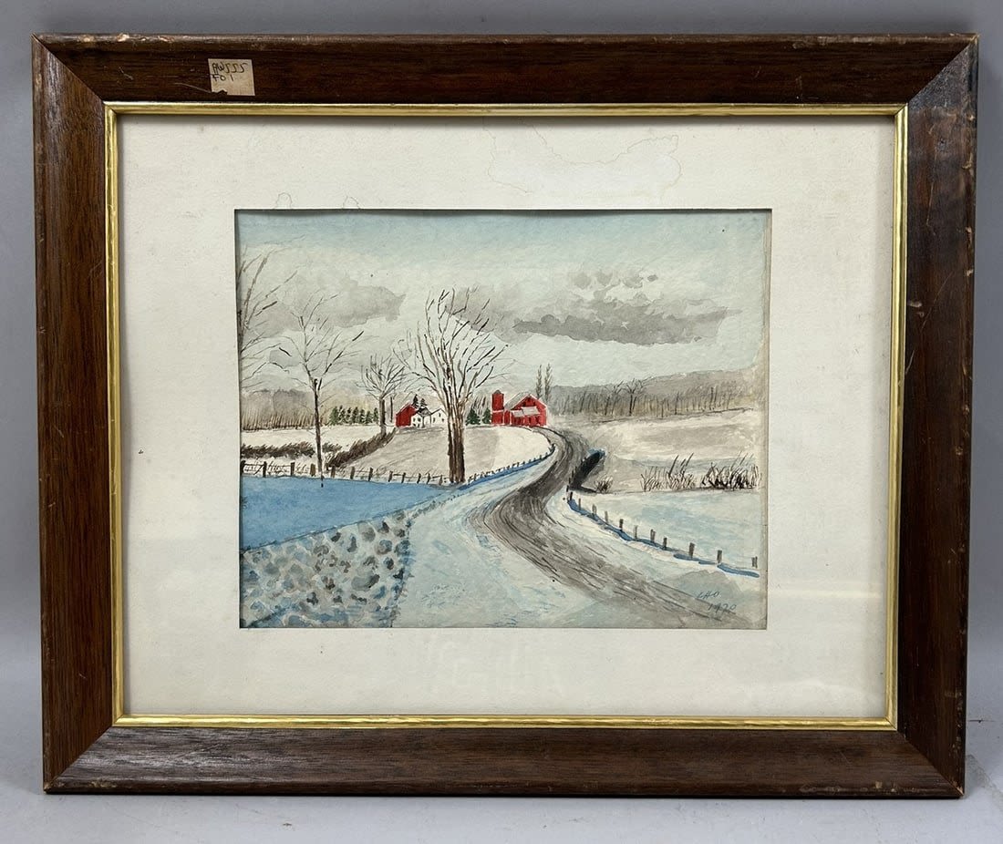Vintage Watercolor Winterscape Painting by Cho 1970